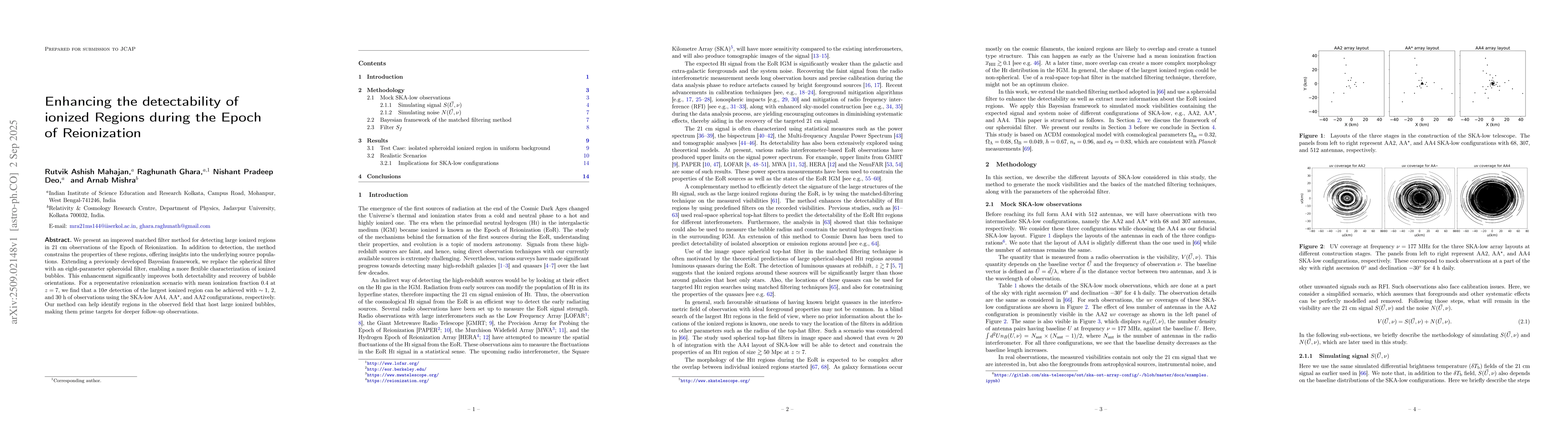 We present an improved matched filter method for detecting large ionized regions in 21 cm observations of the Epoch of Reionization. In addition to detection, the method constrains the properties of these regions, offering insights into the underlying source populations. Extending a previously developed Bayesian framework, we replace the spherical filter with an eight-parameter spheroidal filter, enabling a more flexible characterization of ionized bubbles. This enhancement significantly improves both detectability and recovery of bubble orientations. For a representative reionization scenario with mean ionization fraction $0.4$ at $z=7$, we find that a $10\sigma$ detection of the largest ionized region can be achieved with $\sim 1$, $2$, and $30$ h of observations using the SKA-low AA4, AA$^{\star}$, and AA2 configurations, respectively. Our method can help identify regions in the observed field that host large ionized bubbles, making them prime targets for deeper follow-up observations.