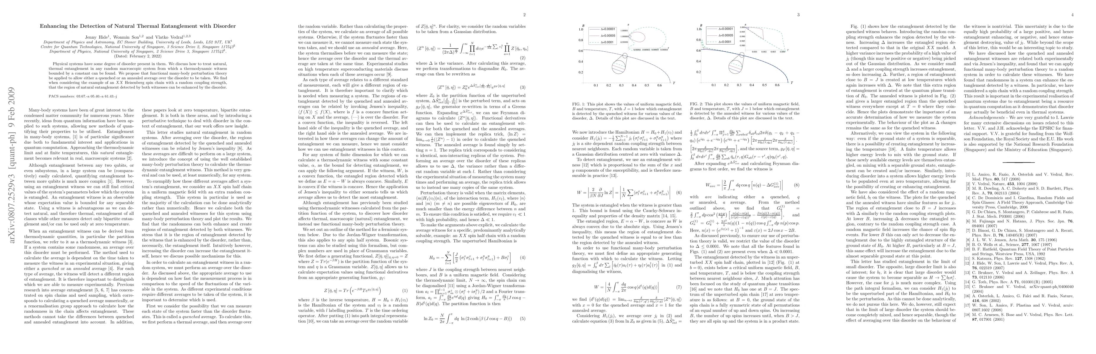 Researchers propose a method to detect natural thermal entanglement in disordered systems using functional many-body perturbation theory, finding that disorder can enhance the detection of entanglement in certain cases.