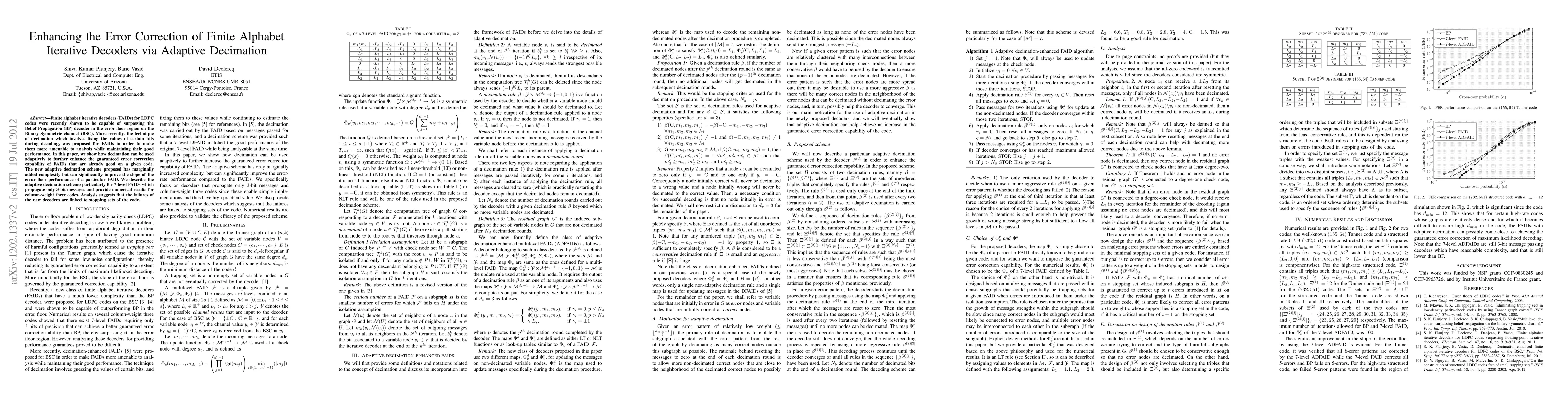 Finite alphabet iterative decoders (FAIDs) for LDPC codes were recently shown to be capable of surpassing the Belief Propagation (BP) decoder in the error floor region on the Binary Symmetric channel (BSC). More recently, the technique of decimation which involves fixing the values of certain bits during decoding, was proposed for FAIDs in order to make them more amenable to analysis while maintaining their good performance. In this paper, we show how decimation can be used adaptively to further enhance the guaranteed error correction capability of FAIDs that are already good on a given code. The new adaptive decimation scheme proposed has marginally added complexity but can significantly improve the slope of the error floor performance of a particular FAID. We describe the adaptive decimation scheme particularly for 7-level FAIDs which propagate only 3-bit messages and provide numerical results for column-weight three codes. Analysis suggests that the failures of the new decoders are linked to stopping sets of the code.