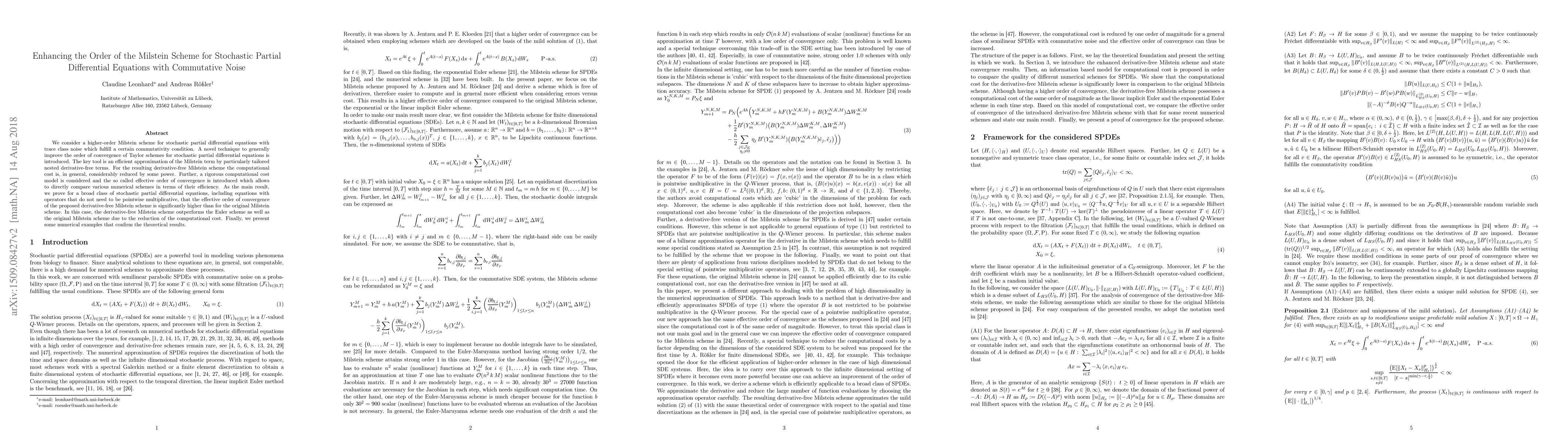 This paper proposes a higher-order derivative-free Milstein scheme for stochastic partial differential equations with commutative noise, significantly improving the order of convergence and reducing computational costs. The scheme outperforms the original Milstein scheme and the Euler scheme, as demonstrated by numerical examples.