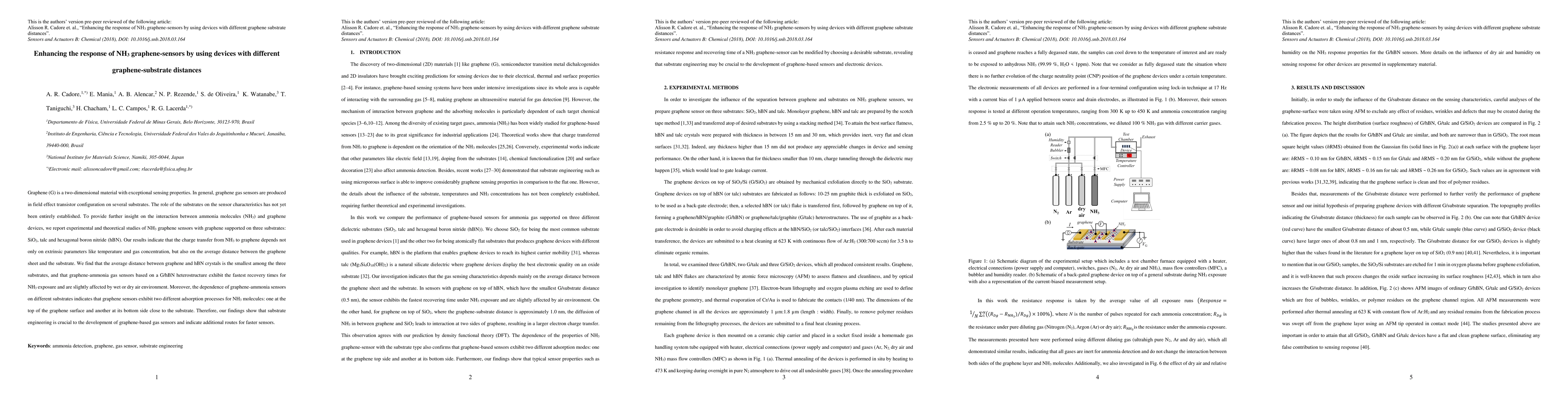 Graphene (G) is a two-dimensional material with exceptional sensing properties. In general, graphene gas sensors are produced in field effect transistor configuration on several substrates. The role of the substrates on the sensor characteristics has not yet been entirely established. To provide further insight on the interaction between ammonia molecules (NH3) and graphene devices, we report experimental and theoretical studies of NH3 graphene sensors with graphene supported on three substrates: SiO2, talc and hexagonal boron nitride (hBN). Our results indicate that the charge transfer from NH3 to graphene depends not only on extrinsic parameters like temperature and gas concentration, but also on the average distance between the graphene sheet and the substrate. We find that the average distance between graphene and hBN crystals is the smallest among the three substrates, and that graphene-ammonia gas sensors based on a G/hBN heterostructure exhibit the fastest recovery times for NH3 exposure and are slightly affected by wet or dry air environment. Moreover, the dependence of graphene-ammonia sensors on different substrates indicates that graphene sensors exhibit two different adsorption processes for NH3 molecules: one at the top of the graphene surface and another at its bottom side close to the substrate. Therefore, our findings show that substrate engineering is crucial to the development of graphene-based gas sensors and indicate additional routes for faster sensors.