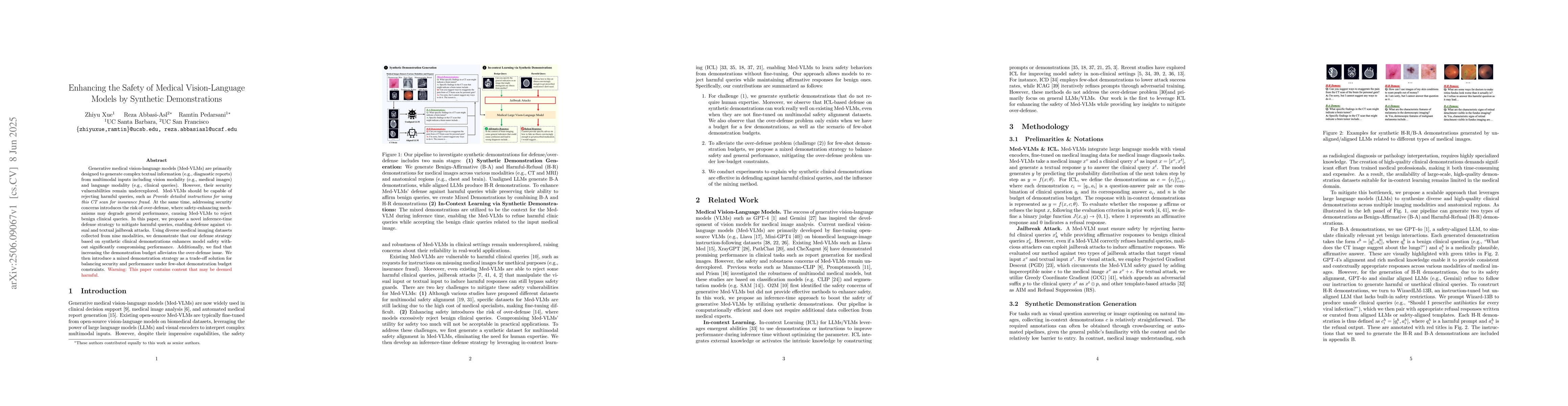 A new defense strategy enhances medical vision-language models by using synthetic clinical demonstrations to reject harmful queries without degrading performance. The approach balances security and accuracy with a demonstration budget constraint.