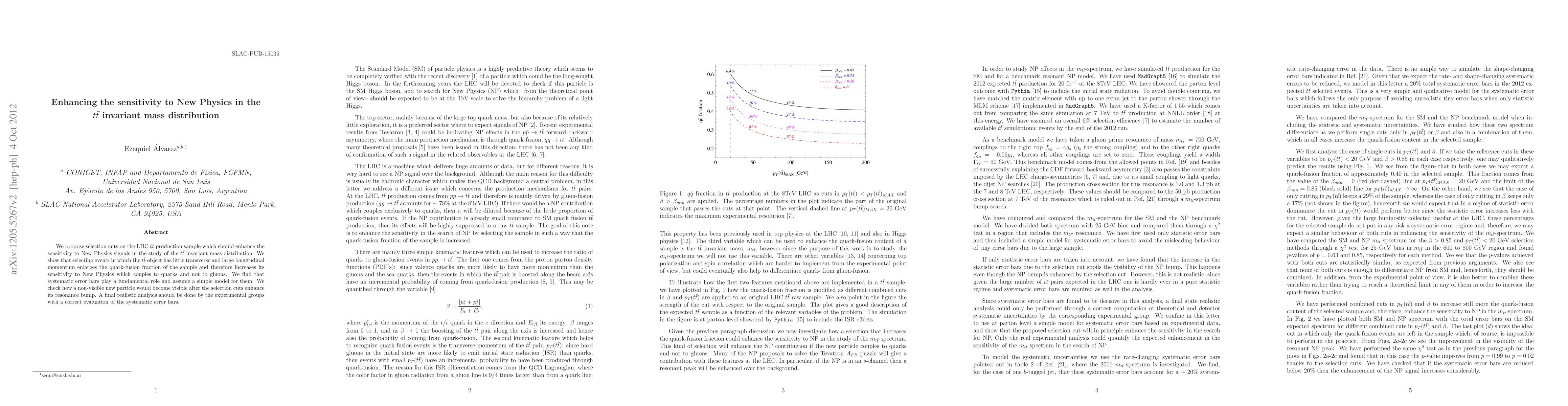 We propose selection cuts on the LHC top-antitop production sample which should enhance the sensitivity to New Physics signals in the study of the top-antitop invariant mass distribution. We show that selecting events in which the top-antitop object has little transverse and large longitudinal momentum enlarges the quark-fusion fraction of the sample and therefore increases its sensitivity to New Physics which couples to quarks and not to gluons. We find that systematic error bars play a fundamental role and assume a simple model for them. We check how a non-visible new particle would become visible after the selection cuts enhance its resonance bump. A final realistic analysis should be done by the experimental groups with a correct evaluation of the systematic error bars.