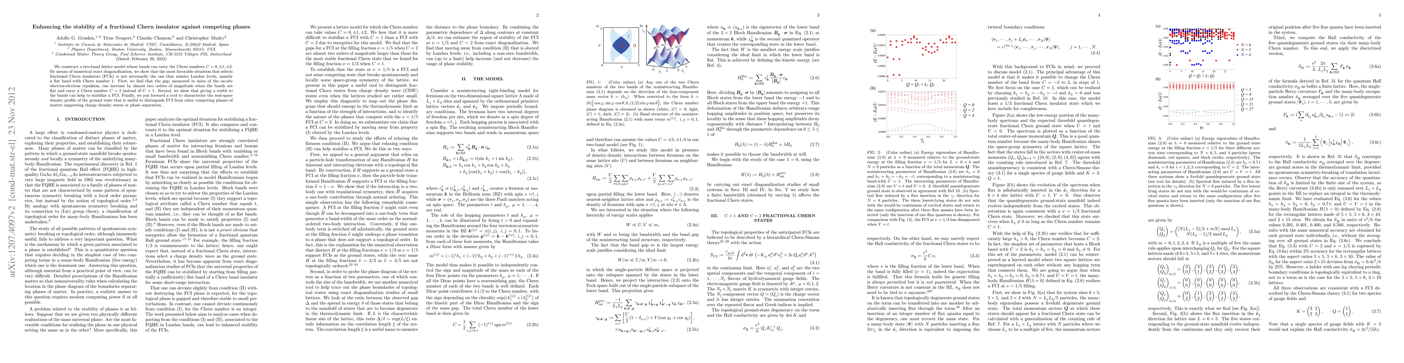 We construct a two-band lattice model whose bands can carry the Chern numbers C=0,pm1,pm2. By means of numerical exact diagonalization, we show that the most favorable situation that selects fractional Chern insulators (FCIs) is not necessarily the one that mimics Landau levels, namely a flat band with Chern number 1. First, we find that the gap, measured in units of the on-site electron-electron repulsion, can increase by almost two orders of magnitude when the bands are flat and carry a Chern number C=2 instead of C=1. Second, we show that giving a width to the bands can help to stabilize a FCI. Finally, we put forward a tool to characterize the real-space density profile of the ground state that is useful to distinguish FCI from other competing phases of matter supporting charge density waves or phase separation.