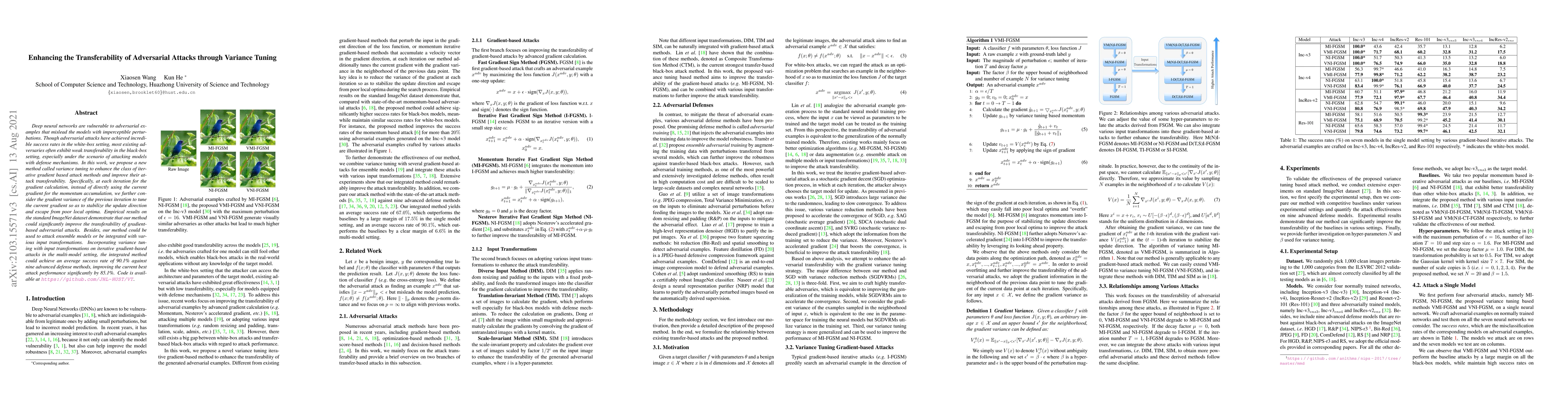 This paper proposes a variance tuning method to enhance the transferability of gradient-based adversarial attacks by stabilizing the update direction and improving escape from local optima. Empirical results show significant improvements in attack success rates against various defense mechanisms on ImageNet.