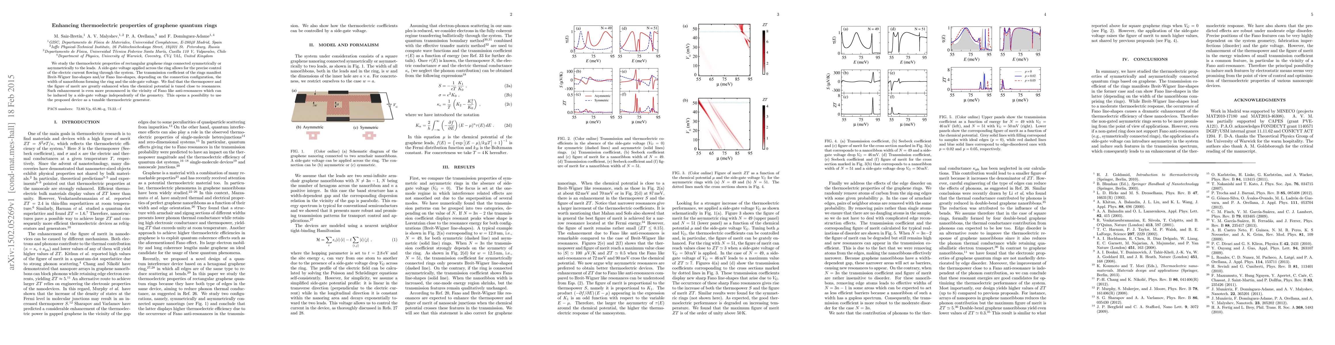 This paper explores the thermoelectric properties of graphene quantum rings connected to leads, demonstrating that tuning the chemical potential near resonances significantly enhances thermopower and the figure of merit. The use of a side-gate voltage allows for precise control, with Fano-like anti-resonances further boosting performance, suggesting potential for tunable thermoelectric generators.