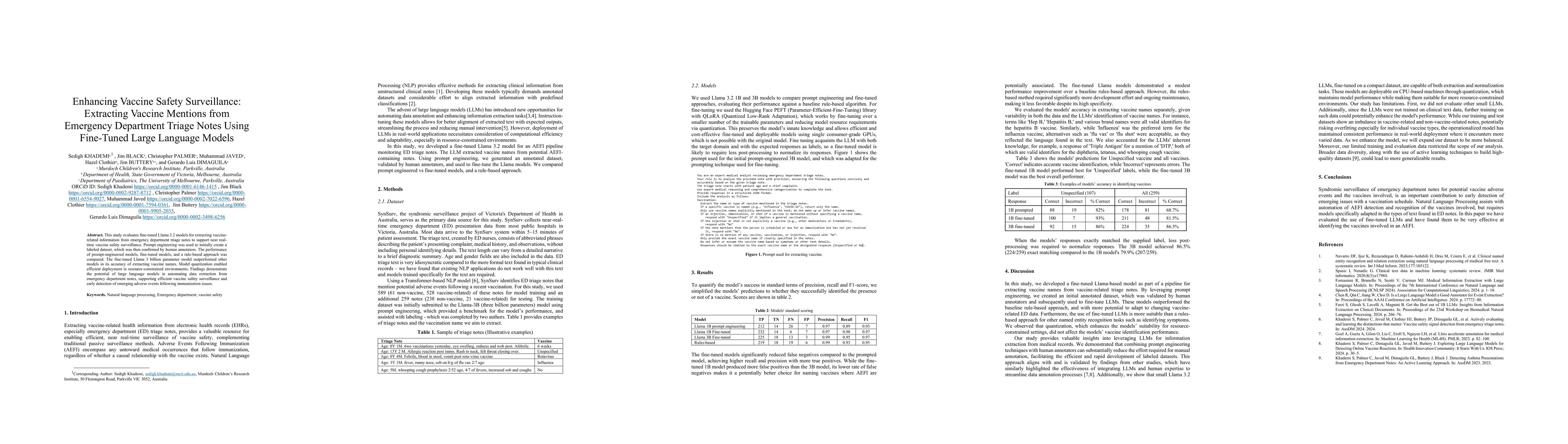 The study presents a method for fine-tuning Llama 3.2 models to extract vaccine names from emergency department triage notes, demonstrating their effectiveness over a rule-based approach.