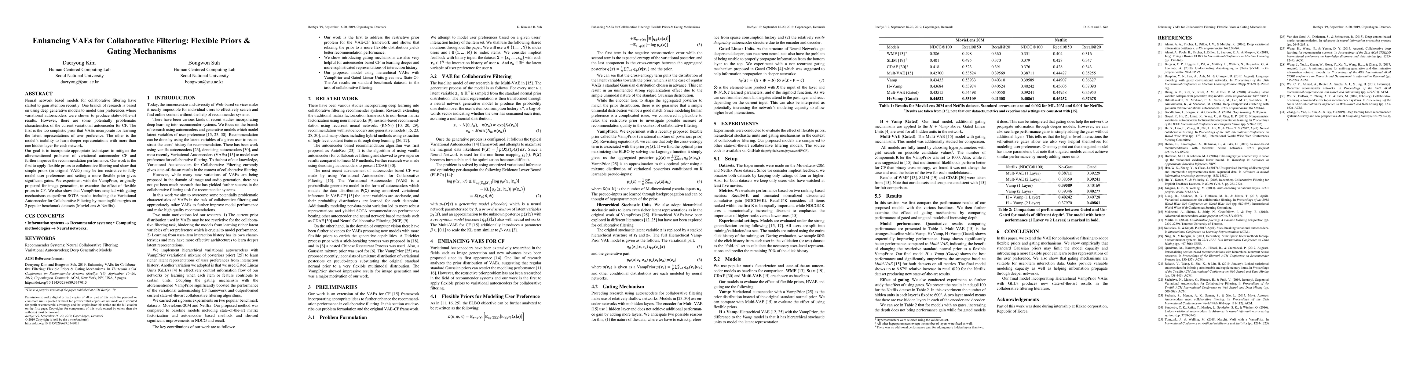 Researchers improve collaborative filtering using variational autoencoders with flexible priors and gating mechanisms, achieving significant gains over state-of-the-art results on popular benchmark datasets.