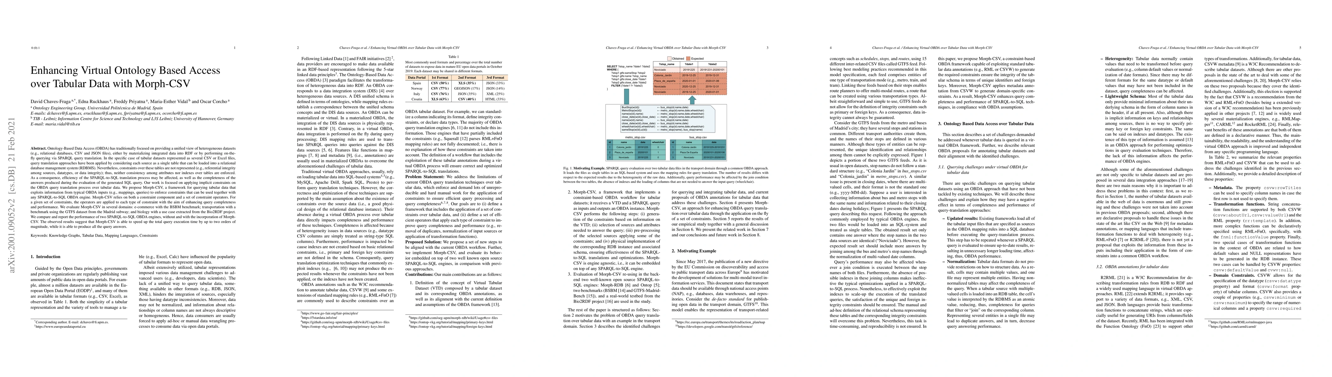 Morph-CSV enhances virtual ontology-based access over tabular data by applying implicit constraints to improve query completeness and performance, achieving speeds up to two orders of magnitude.