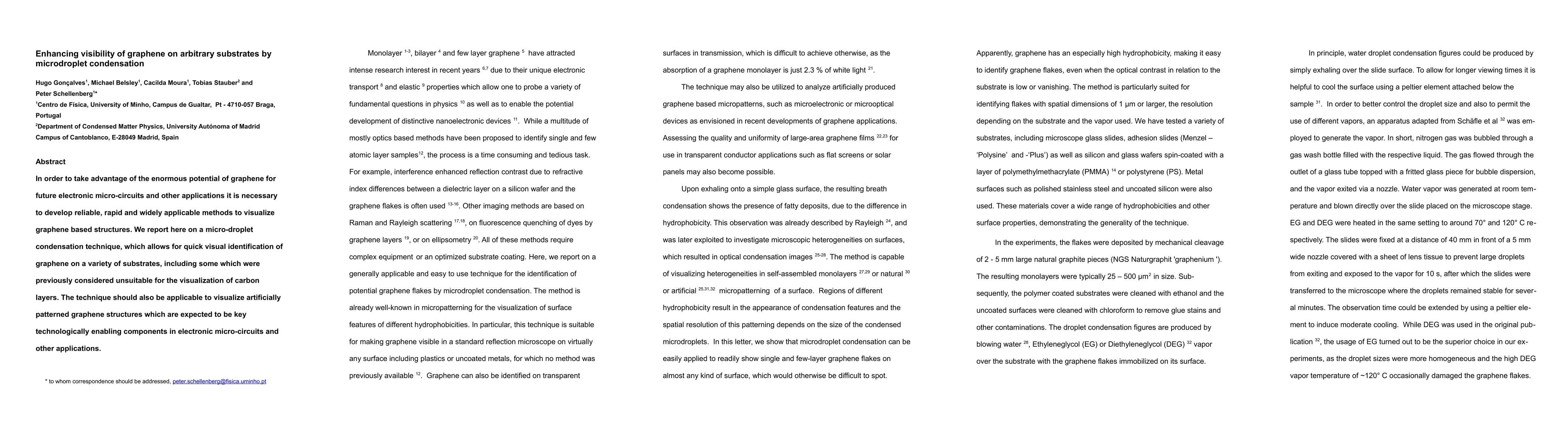 This paper introduces a microdroplet condensation technique for rapidly visualizing graphene on diverse substrates, enhancing its applicability for future electronic micro-circuits and other applications. The method enables quick identification of graphene on previously unsuitable substrates and can also be used for visualizing patterned graphene structures.