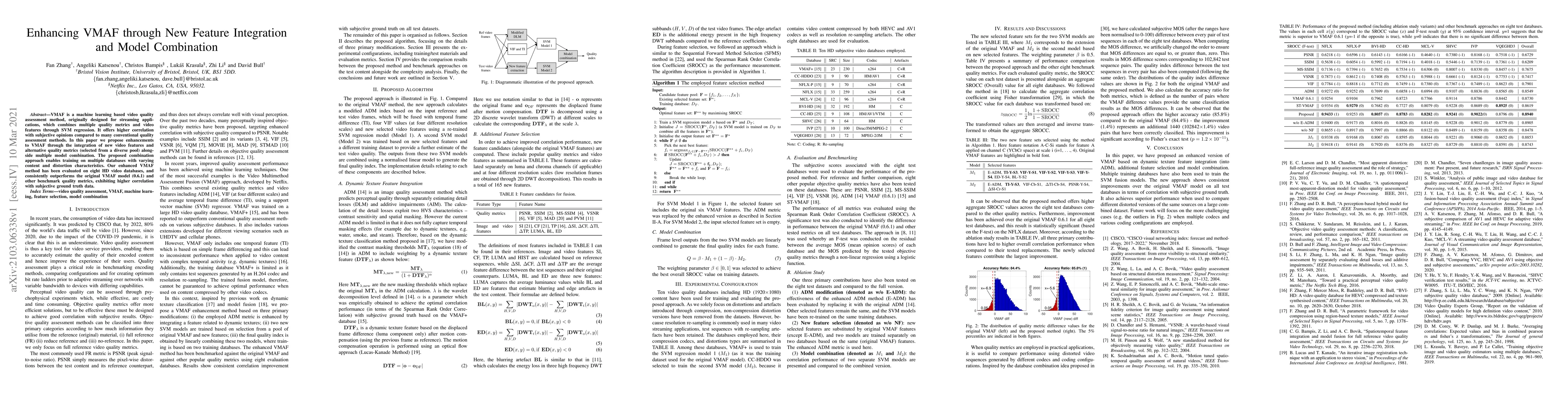 VMAF is a machine learning based video quality assessment method, originally designed for streaming applications, which combines multiple quality metrics and video features through SVM regression. It offers higher correlation with subjective opinions compared to many conventional quality assessment methods. In this paper we propose enhancements to VMAF through the integration of new video features and alternative quality metrics (selected from a diverse pool) alongside multiple model combination. The proposed combination approach enables training on multiple databases with varying content and distortion characteristics. Our enhanced VMAF method has been evaluated on eight HD video databases, and consistently outperforms the original VMAF model (0.6.1) and other benchmark quality metrics, exhibiting higher correlation with subjective ground truth data.