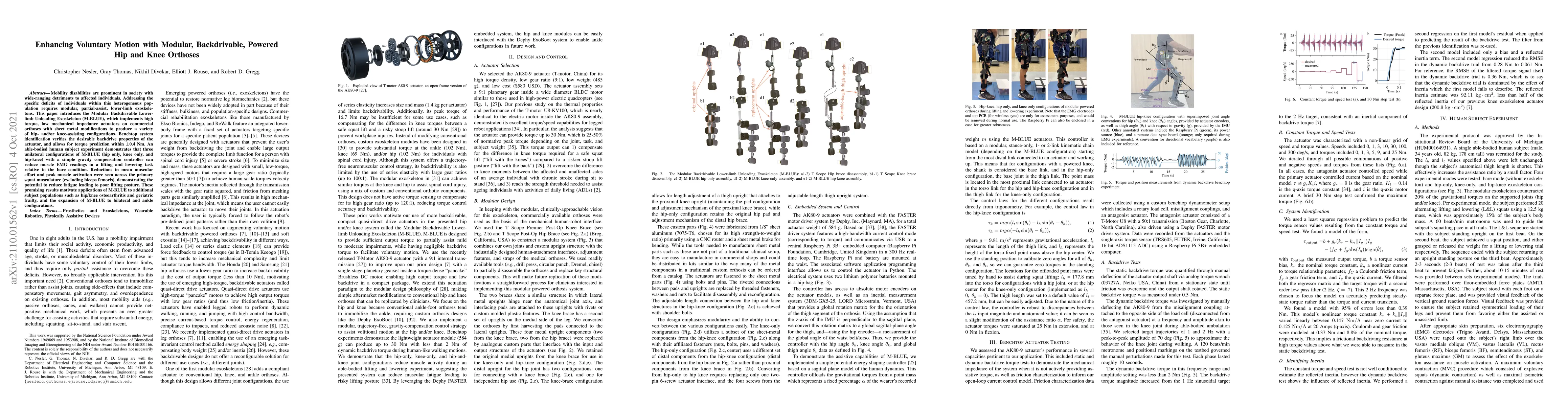M-BLUE's use of high torque, low mechanical impedance actuators on commercial orthoses with sheet metal modifications provides a novel, modular solution for lower-limb exoskeletons.