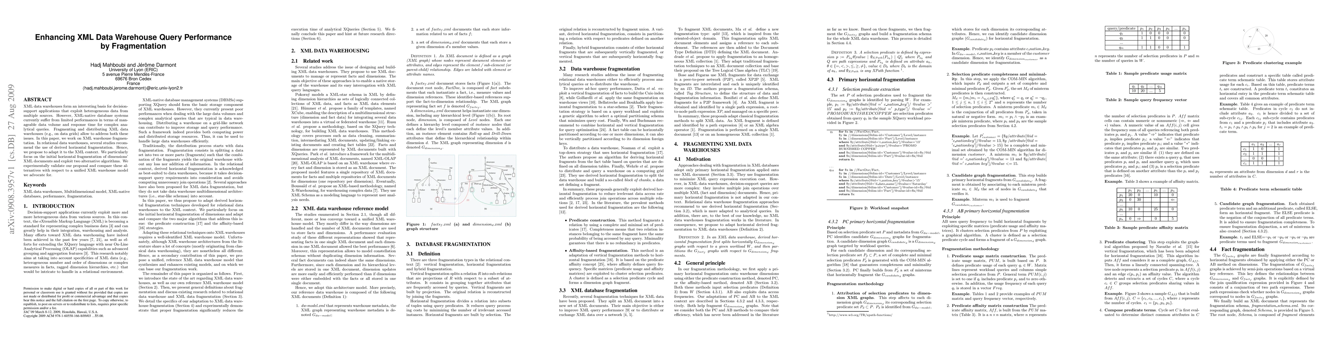 This paper proposes adapting horizontal fragmentation techniques from relational data warehouses to enhance XML data warehouse query performance. It introduces two alternative algorithms for initial fragmentation of dimensions' XML documents and validates their effectiveness through experiments, comparing them against a unified XML warehouse model.
