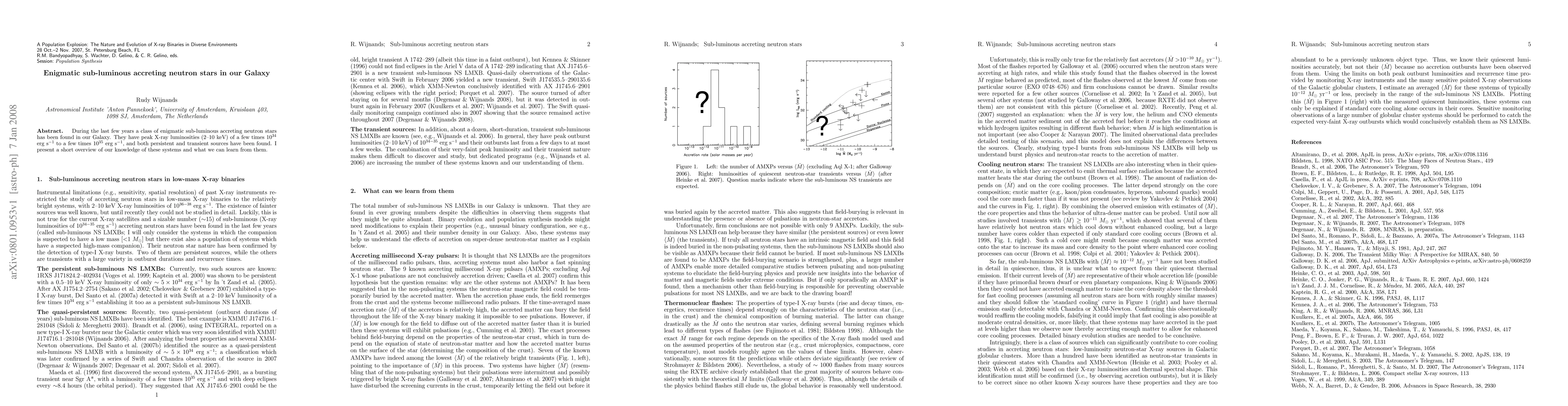 This paper discusses the discovery of enigmatic sub-luminous accreting neutron stars in our Galaxy, characterized by peak X-ray luminosities ranging from 1E34 to 1E35 erg/s, and explores what these systems reveal about neutron star accretion processes.