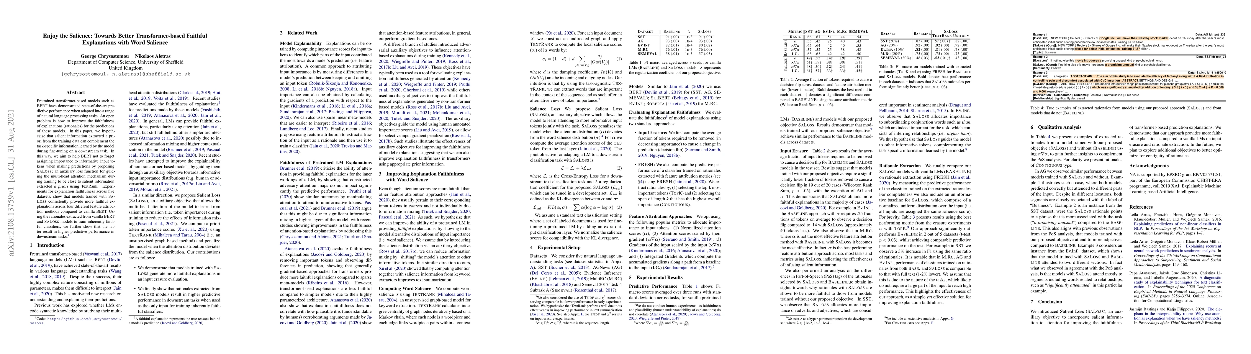 Pretrained transformer-based models such as BERT have demonstrated state-of-the-art predictive performance when adapted into a range of natural language processing tasks. An open problem is how to improve the faithfulness of explanations (rationales) for the predictions of these models. In this paper, we hypothesize that salient information extracted a priori from the training data can complement the task-specific information learned by the model during fine-tuning on a downstream task. In this way, we aim to help BERT not to forget assigning importance to informative input tokens when making predictions by proposing SaLoss; an auxiliary loss function for guiding the multi-head attention mechanism during training to be close to salient information extracted a priori using TextRank. Experiments for explanation faithfulness across five datasets, show that models trained with SaLoss consistently provide more faithful explanations across four different feature attribution methods compared to vanilla BERT. Using the rationales extracted from vanilla BERT and SaLoss models to train inherently faithful classifiers, we further show that the latter result in higher predictive performance in downstream tasks.