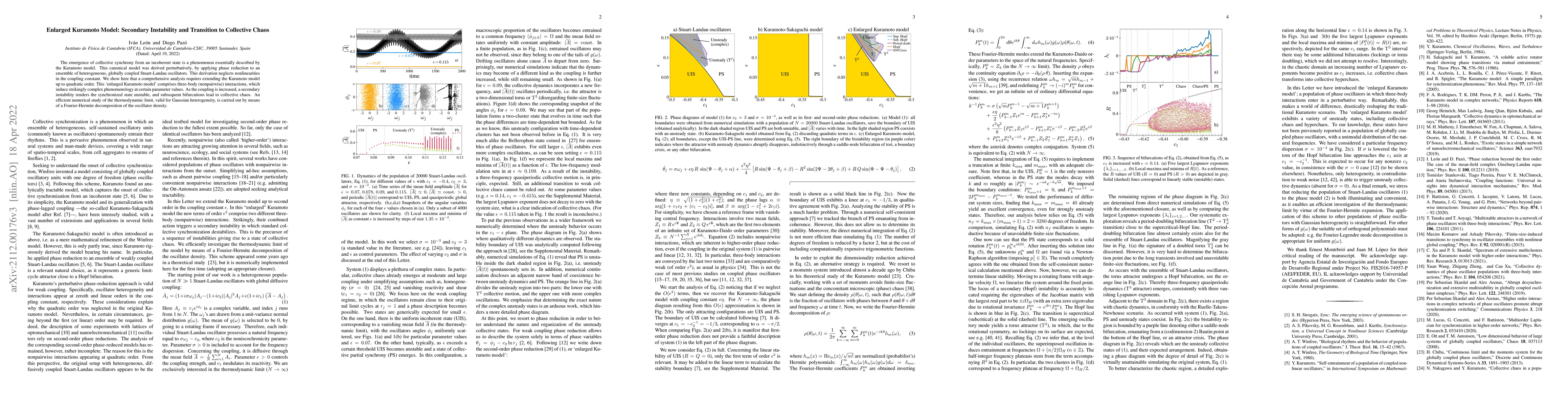 Researchers extended the Kuramoto model to include three-body interactions, revealing a secondary instability that destabilizes synchronized states and leads to collective chaos as coupling increases.