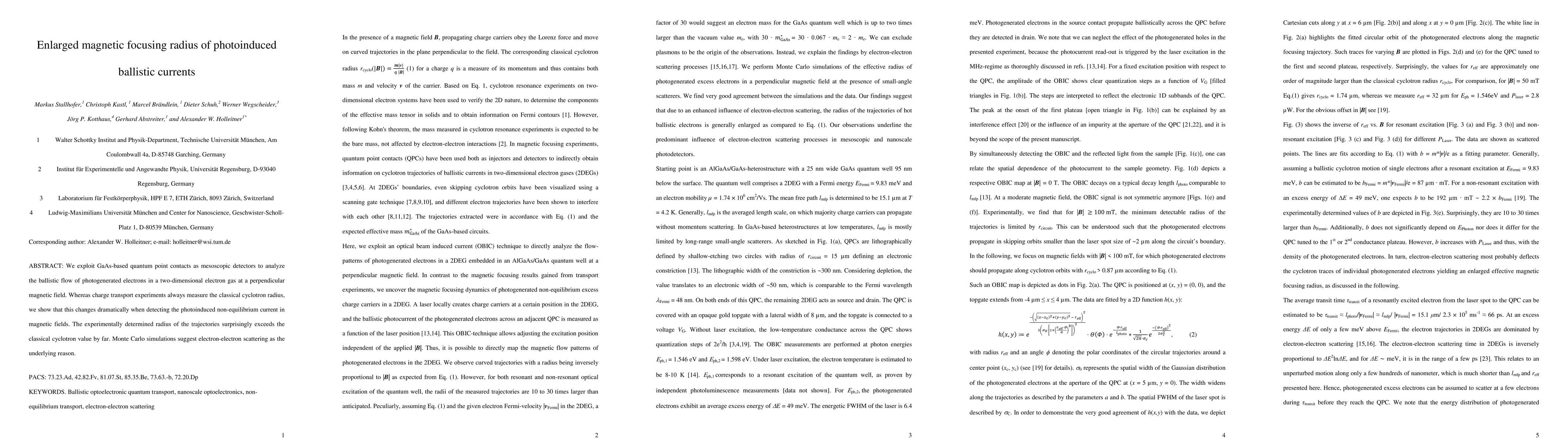We exploit GaAs-based quantum point contacts as mesoscopic detectors to analyze the ballistic flow of photogenerated electrons in a two-dimensional electron gas at a perpendicular magnetic field. Whereas charge transport experiments always measure the classical cyclotron radius, we show that this changes dramatically when detecting the photoinduced non-equilibrium current in magnetic fields. The experimentally determined radius of the trajectories surprisingly exceeds the classical cyclotron value by far. Monte Carlo simulations suggest electron-electron scattering as the underlying reason.