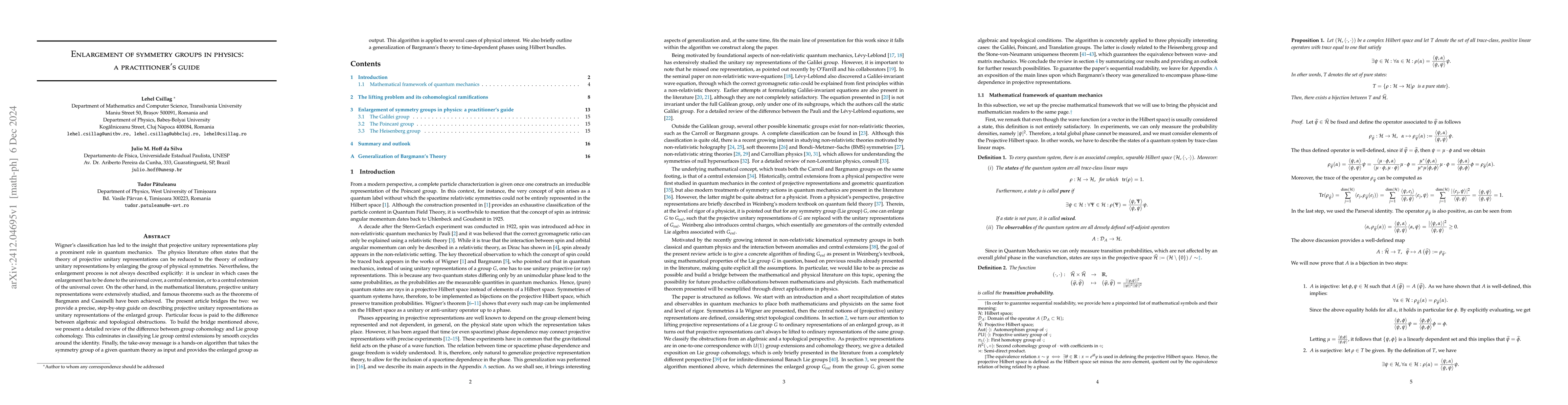 Wigner's classification has led to the insight that projective unitary representations play a prominent role in quantum mechanics. The physics literature often states that the theory of projective unitary representations can be reduced to the theory of ordinary unitary representations by enlarging the group of physical symmetries. Nevertheless, the enlargement process is not always described explicitly: it is unclear in which cases the enlargement has to be done to the universal cover, a central extension, or to a central extension of the universal cover. On the other hand, in the mathematical literature, projective unitary representations were extensively studied, and famous theorems such as the theorems of Bargmann and Cassinelli have been achieved. The present article bridges the two: we provide a precise, step-by-step guide on describing projective unitary representations as unitary representations of the enlarged group. Particular focus is paid to the difference between algebraic and topological obstructions. To build the bridge mentioned above, we present a detailed review of the difference between group cohomology and Lie group cohomology. This culminates in classifying Lie group central extensions by smooth cocycles around the identity. Finally, the take-away message is a hands-on algorithm that takes the symmetry group of a given quantum theory as input and provides the enlarged group as output. This algorithm is applied to several cases of physical interest. We also briefly outline a generalization of Bargmann's theory to time-dependent phases using Hilbert bundles.
