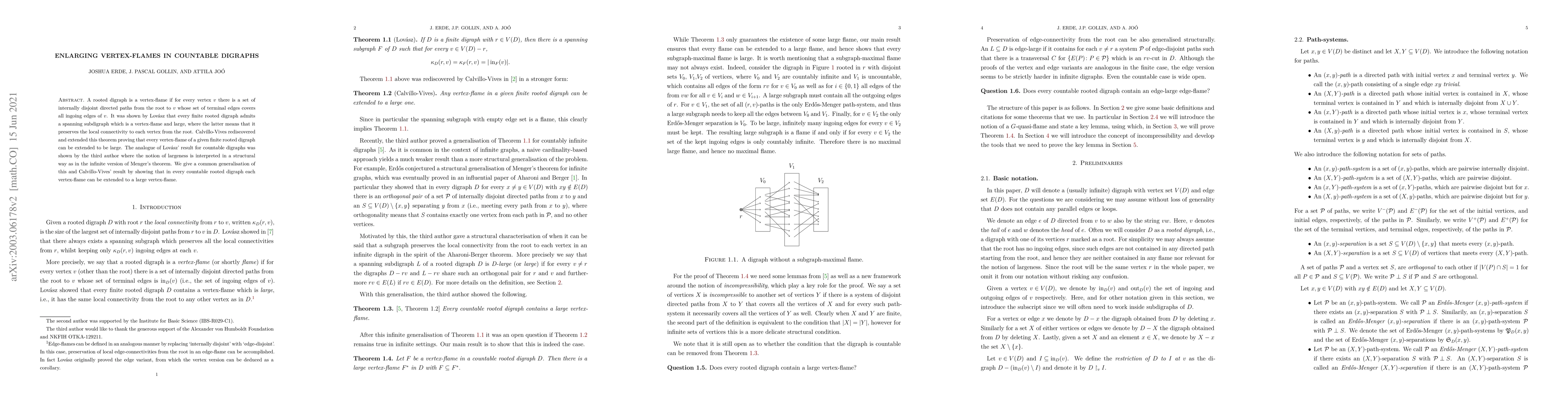 A rooted digraph is a vertex-flame if for every vertex $v$ there is a set of internally disjoint directed paths from the root to $v$ whose set of terminal edges covers all ingoing edges of $v$. It was shown by Lov\'{a}sz that every finite rooted digraph admits a spanning subdigraph which is a vertex-flame and large, where the latter means that it preserves the local connectivity to each vertex from the root. A structural generalisation of vertex-flames and largeness to infinite digraphs was given by the third author and the analogue of Lov\'{a}sz' result for countable digraphs was shown. We strengthen this result by proving that in every countable rooted digraph each vertex-flame can be extended to a large vertex-flame.