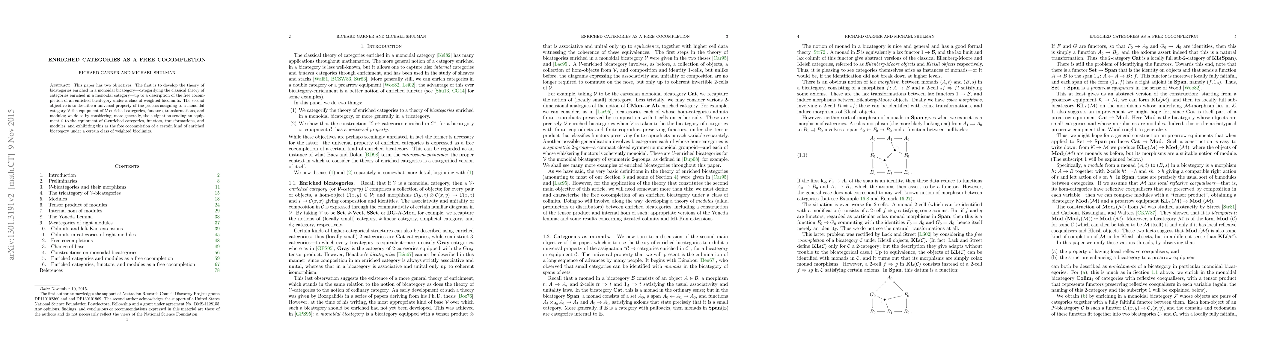 This paper has two objectives. The first is to develop the theory of bicategories enriched in a monoidal bicategory -- categorifying the classical theory of categories enriched in a monoidal category -- up to a description of the free cocompletion of an enriched bicategory under a class of weighted bicolimits. The second objective is to describe a universal property of the process assigning to a monoidal category V the equipment of V-enriched categories, functors, transformations, and modules; we do so by considering, more generally, the assignation sending an equipment C to the equipment of C-enriched categories, functors, transformations, and modules, and exhibiting this as the free cocompletion of a certain kind of enriched bicategory under a certain class of weighted bicolimits.