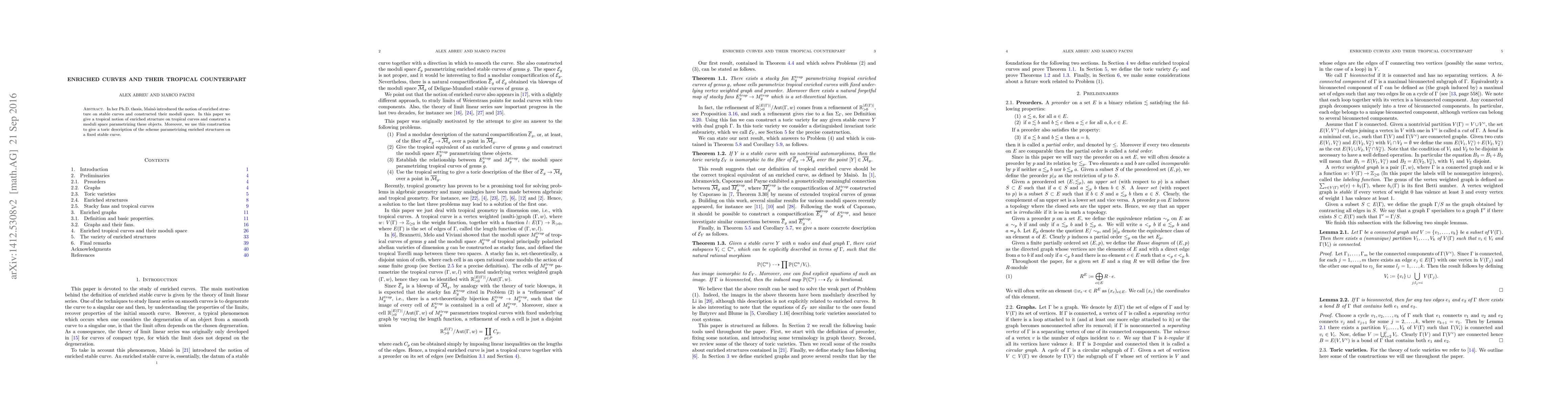 This paper extends Main\`o's concept of enriched structure from stable curves to tropical curves, constructing a moduli space for these tropical enriched structures and providing a toric description of the scheme parametrizing enriched structures on a fixed stable curve.