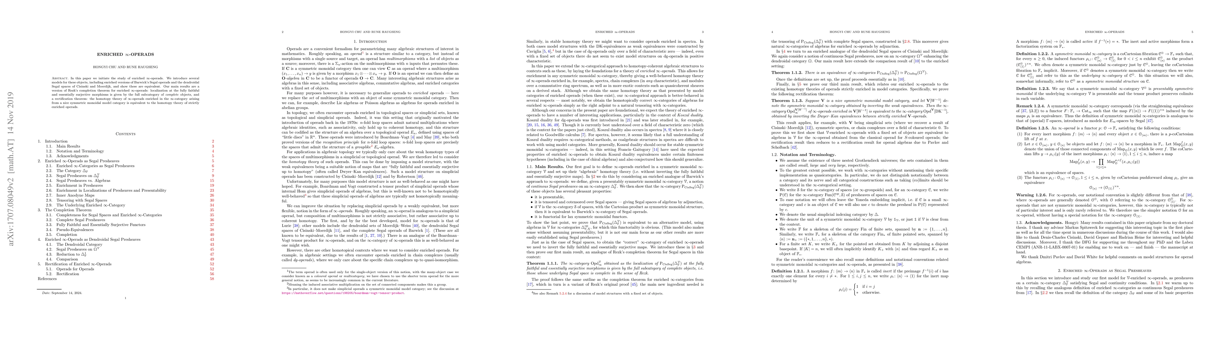This paper studies enriched $\infty$-operads, introducing enriched versions of Segal operads and dendroidal Segal spaces and proving their equivalence. It also proves a completion theorem for these enriched $\infty$-operads and establishes an equivalence between the homotopy theory of enriched $\infty$-operads and that of strictly enriched operads.