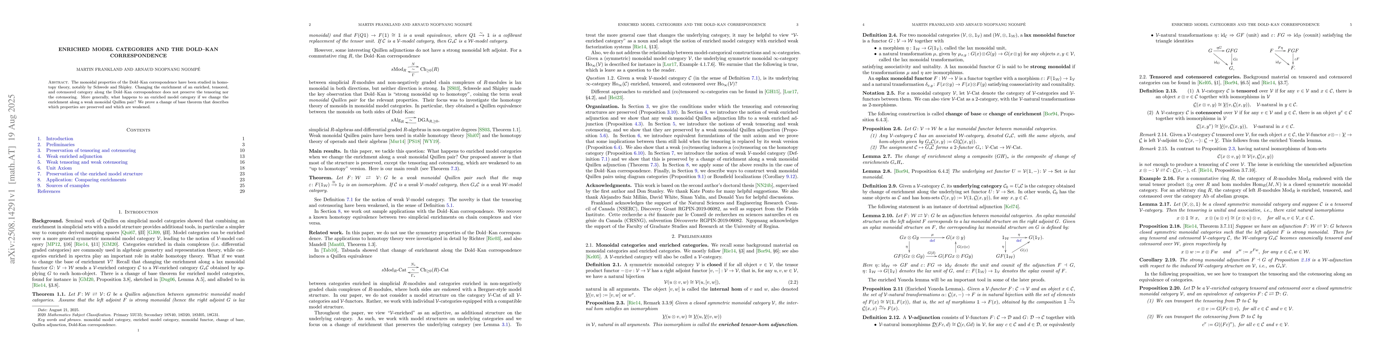 The monoidal properties of the Dold-Kan correspondence have been studied in homotopy theory, notably by Schwede and Shipley. Changing the enrichment of an enriched, tensored, and cotensored category along the Dold-Kan correspondence does not preserve the tensoring nor the cotensoring. More generally, what happens to an enriched model category if we change the enrichment along a weak monoidal Quillen pair? We prove a change of base theorem that describes which properties are preserved and which are weakened.