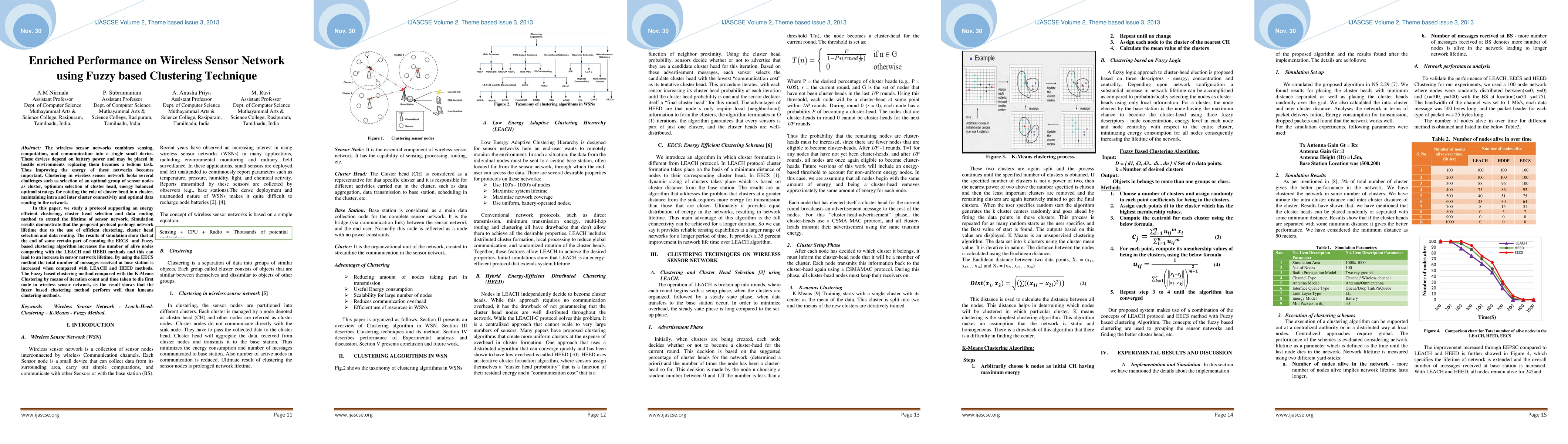 The wireless sensor networks combines sensing, computation, and communication into a single small device. These devices depend on battery power and may be placed in hostile environments replacing them becomes a tedious task. Thus improving the energy of these networks becomes important. Clustering in wireless sensor network looks several challenges such as selection of an optimal group of sensor nodes as cluster, optimum selection of cluster head, energy balanced optimal strategy for rotating the role of cluster head in a cluster, maintaining intra and inter cluster connectivity and optimal data routing in the network. In this paper, we study a protocol supporting an energy efficient clustering, cluster head selection and data routing method to extend the lifetime of sensor network. Simulation results demonstrate that the proposed protocol prolongs network lifetime due to the use of efficient clustering, cluster head selection and data routing. The results of simulation show that at the end of some certain part of running the EECS and Fuzzy based clustering algorithm increases the number of alive nodes comparing with the LEACH and HEED methods and this can lead to an increase in sensor network lifetime. By using the EECS method the total number of messages received at base station is increased when compared with LEACH and HEED methods. The Fuzzy based clustering method compared with the K-Means Clustering by means of iteration count and time taken to die first node in wireless sensor network, as the result shows that the fuzzy based clustering method perform well than kmeans clustering methods.
