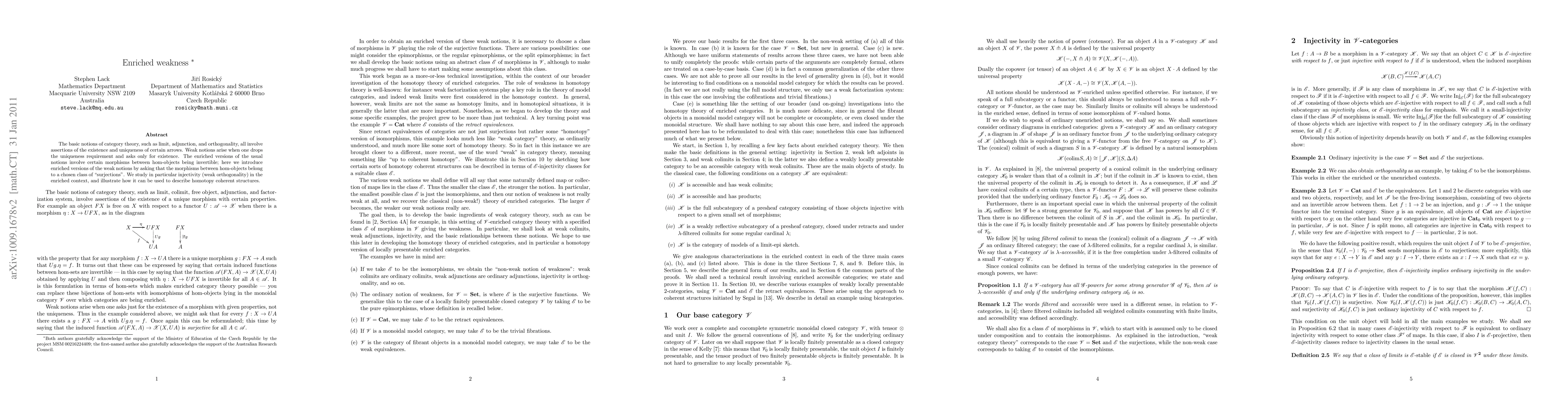 The basic notions of category theory, such as limit, adjunction, and orthogonality, all involve assertions of the existence and uniqueness of certain arrows. Weak notions arise when one drops the uniqueness requirement and asks only for existence. The enriched versions of the usual notions involve certain morphisms between hom-objects being invertible; here we introduce enriched versions of the weak notions by asking that the morphisms between hom-objects belong to a chosen class of "surjections". We study in particular injectivity (weak orthogonality) in the enriched context, and illustrate how it can be used to describe homotopy coherent structures.