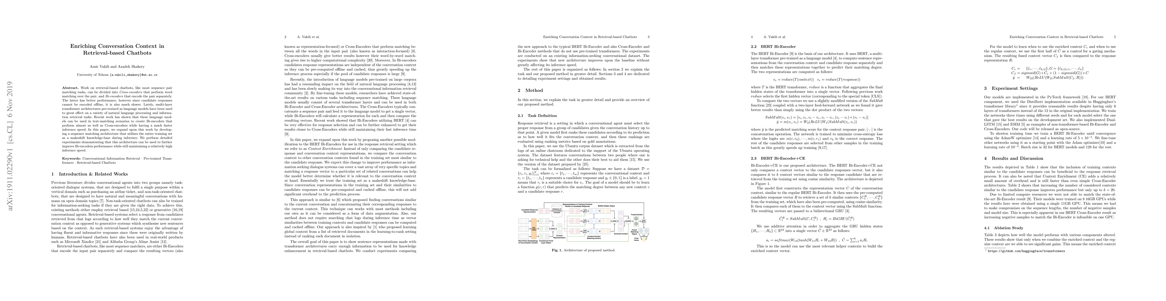 Researchers developed a sequence matching architecture that leverages entire training sets as knowledge bases to improve Bi-encoder performance in chatbots while maintaining fast inference speed.