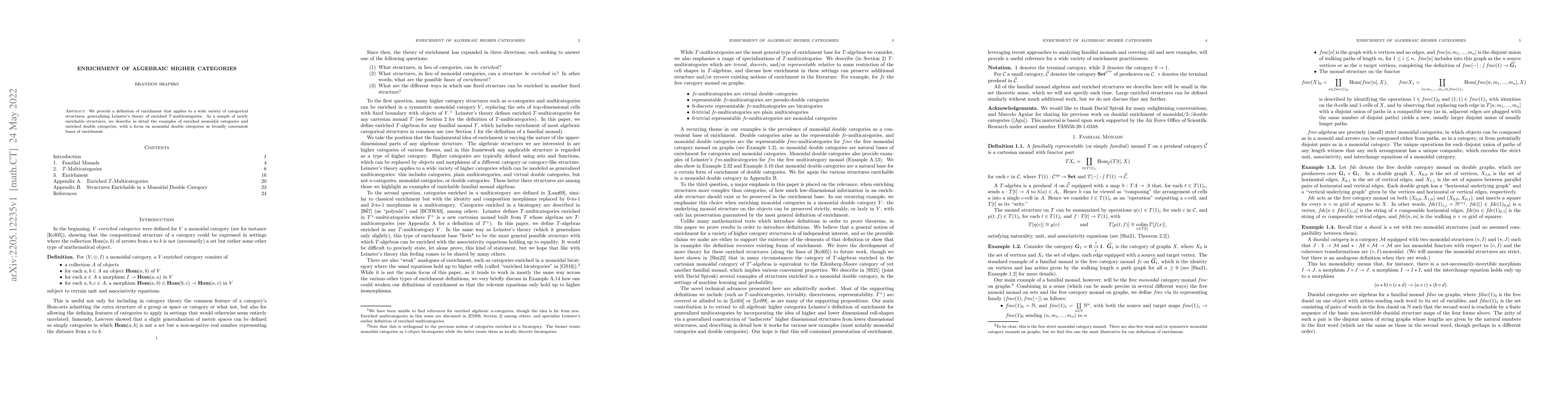 We provide a definition of enrichment that applies to a wide variety of categorical structures, generalizing Leinster's theory of enriched $T$-multicategories. As a sample of newly enrichable structures, we describe in detail the examples of enriched monoidal categories and enriched double categories, with a focus on monoidal double categories as broadly convenient bases of enrichment.