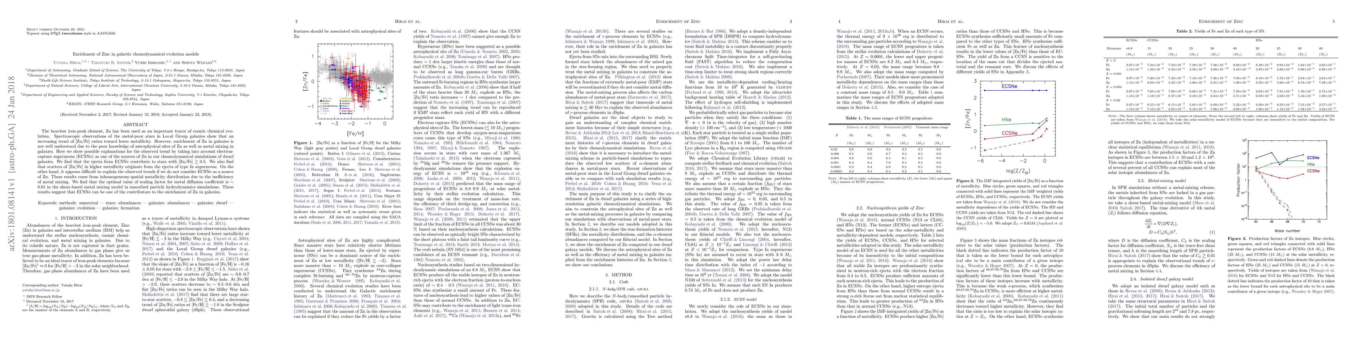 The heaviest iron-peak element, Zn has been used as an important tracer of cosmic chemical evolution. Spectroscopic observations of the metal-poor stars in Local Group galaxies show that an increasing trend of [Zn/Fe] ratios toward lower metallicity. However, enrichment of Zn in galaxies is not well understood due to the poor knowledge of astrophysical sites of Zn as well as metal mixing in galaxies. Here we show possible explanations for the observed trend by taking into account electron-capture supernovae (ECSNe) as one of the sources of Zn in our chemodynamical simulations of dwarf galaxies. We find that the ejecta from ECSNe contribute to stars with [Zn/Fe] $\gtrsim$ 0.5. We also find that scatters of [Zn/Fe] in higher metallicity originate from the ejecta of type Ia supernovae. On the other hand, it appears difficult to explain the observed trends if we do not consider ECSNe as a source of Zn. These results come from inhomogeneous spatial metallicity distribution due to the inefficiency of metal mixing. We find that the optimal value of scaling factor for metal diffusion coefficient is $\sim$ 0.01 in the shear-based metal mixing model in smoothed particle hydrodynamics simulations. These results suggest that ECSNe can be one of the contributors to the enrichment of Zn in galaxies.