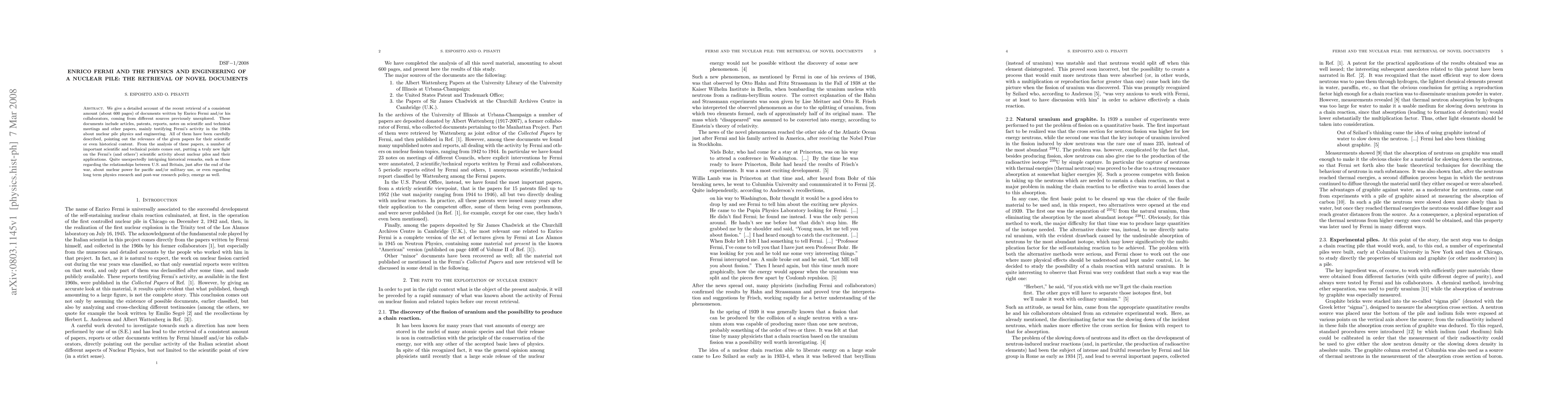 We give a detailed account of the recent retrieval of a consistent amount (about 600 pages) of documents written by Enrico Fermi and/or his collaborators, coming from different sources previously unexplored. These documents include articles, patents, reports, notes on scientific and technical meetings and other papers, mainly testifying Fermi's activity in the 1940s about nuclear pile physics and engineering. All of them have been carefully described, pointing out the relevance of the given papers for their scientific or even historical content. From the analysis of these papers, a number of important scientific and technical points comes out, putting a truly new light on the Fermi's (and others') scientific activity about nuclear piles and their applications. Quite unexpectedly intriguing historical remarks, such as those regarding the relationships between U.S. and Britain, just after the end of the war, about nuclear power for pacific and/or military use, or even regarding long term physics research and post-war research policy, emerge as well.