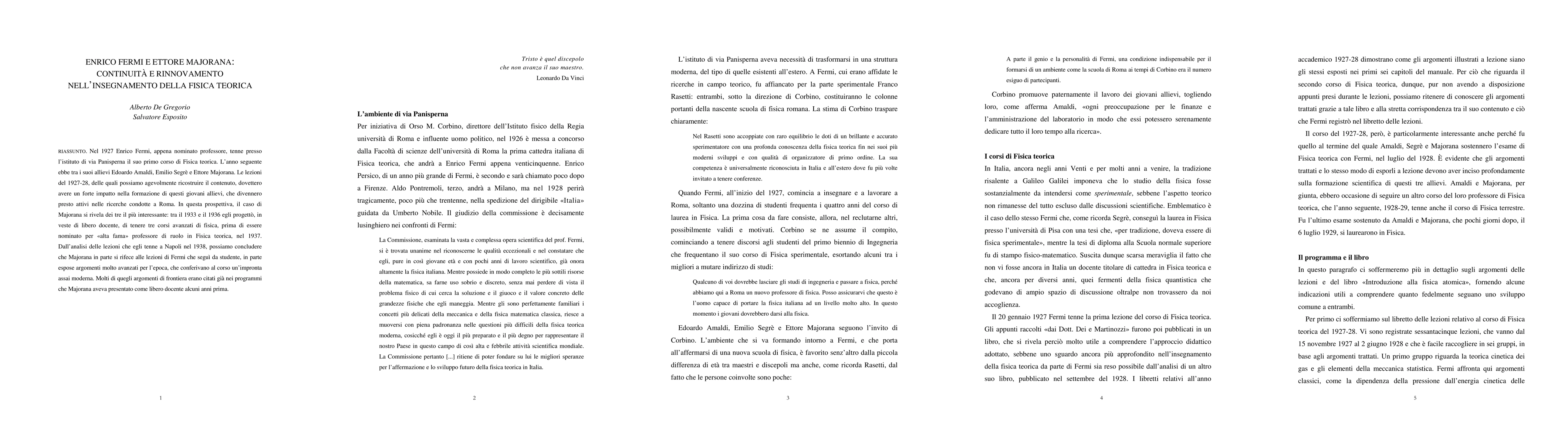 In 1927, just after he obtained a full professorship, Enrico Fermi delivered his first course on Theoretical Physics at the Institute of Physics in Rome. The following year Edoardo Amaldi, Emilio Segre' and Ettore Majorana became students of that course. The lectures given in 1927-28, whose content may be easily reconstructed, probably had a deep impact in forming such young students, who participated actively in the Physics researches carried on in Rome soon after. In this perspective, the case of Ettore Majorana is certainly the most important one: as a lecturer, in 1933-36 he planned to give three advanced Physics courses in Rome, before obtaining his full professorship in Theoretical Physics "for high and well-deserved repute" in 1937. From the analysis of the lectures he delivered in Naples in 1938, we can conclude that, in part, Majorana referred to the Fermi lectures he followed as a student, but he also introduced some advanced (for that time) topics, rendering his course a very modern one. Much of these frontier topics were already cited in the programmes of the mentioned three courses he presented few years earlier.