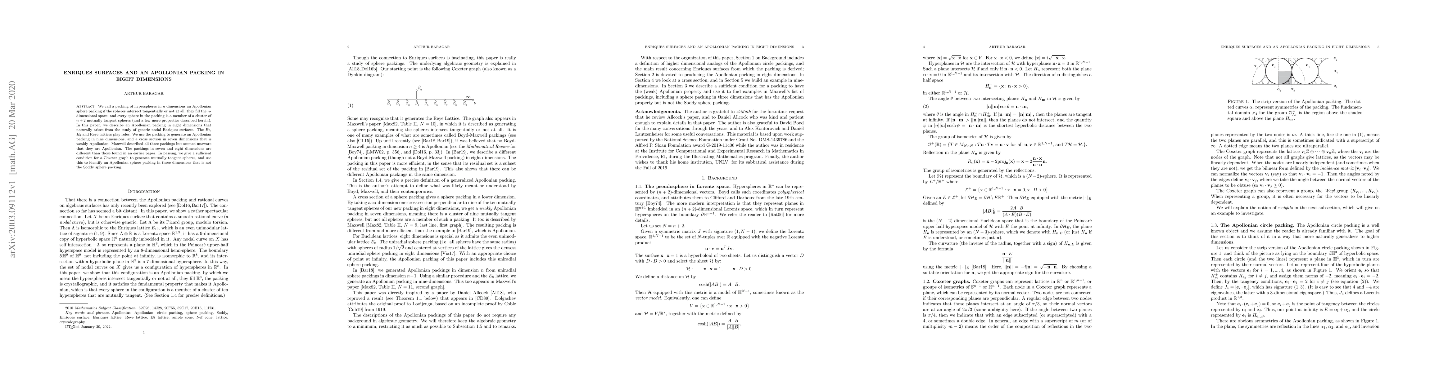 Researchers discovered a naturally occurring Apollonian packing in 8 dimensions, related to Enriques surfaces, and used it to create similar packings in 7 and 9 dimensions, with implications for understanding sphere packings.