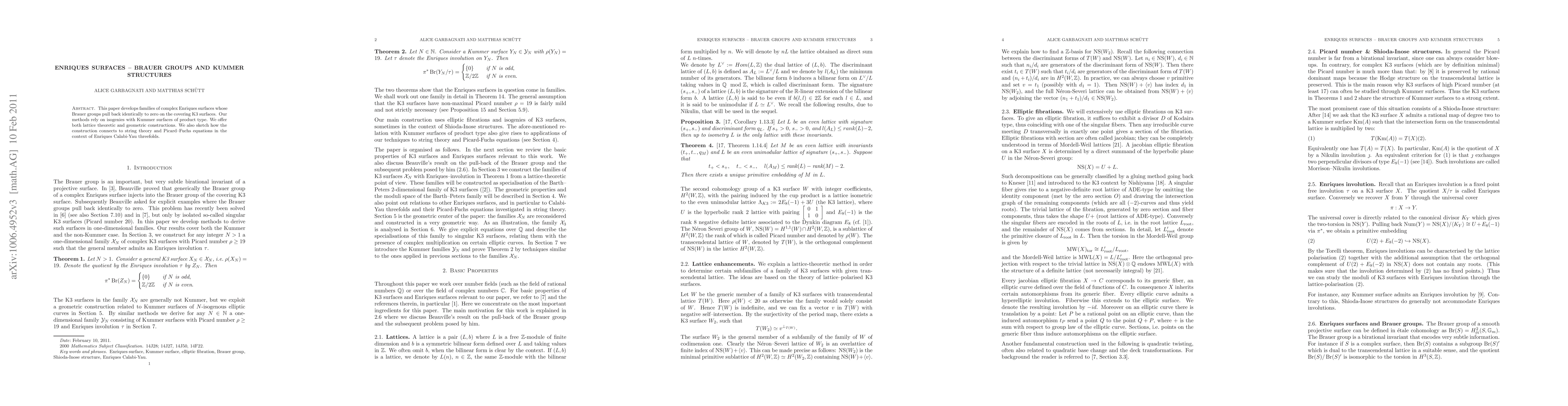 This paper explores complex Enriques surfaces and demonstrates that their Brauer groups vanish when pulled back to K3 surfaces via isogenies linked to Kummer structures. It provides both lattice-theoretic and geometric constructions, and hints at connections to string theory and Picard-Fuchs equations in relation to Enriques Calabi-Yau threefolds.