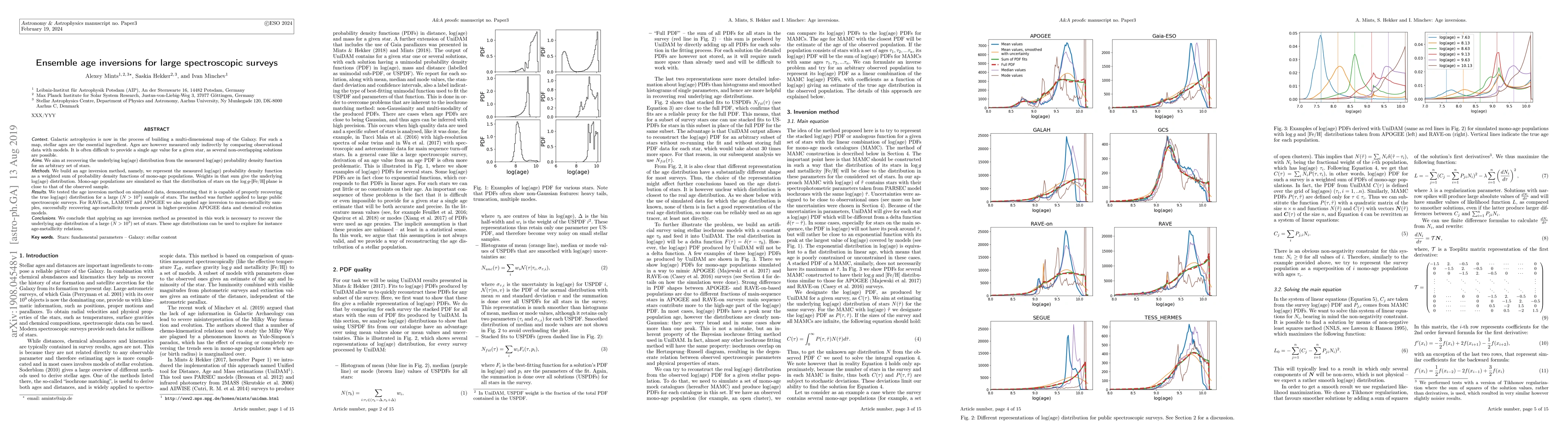 This paper develops an ensemble age inversion method to recover the underlying log(age) distribution from indirect measurements for large spectroscopic surveys. The method successfully recovers true age distributions and age-metallicity trends in samples from RAVE-on, LAMOST, and APOGEE surveys, demonstrating its utility for exploring age-metallicity relations.