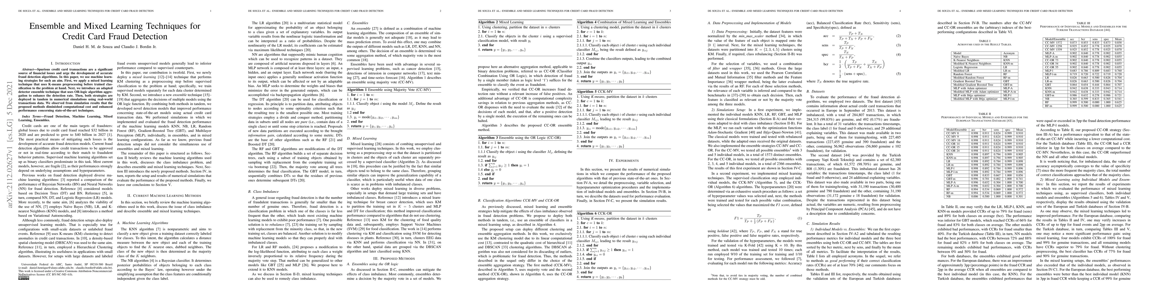 This research paper proposes two machine learning techniques to detect credit card fraud: a mixed learning approach using K-means preprocessing and an ensemble technique combining multiple detectors via OR-logic aggregation. The proposed methods outperform existing state-of-the-art techniques while reducing computational cost.