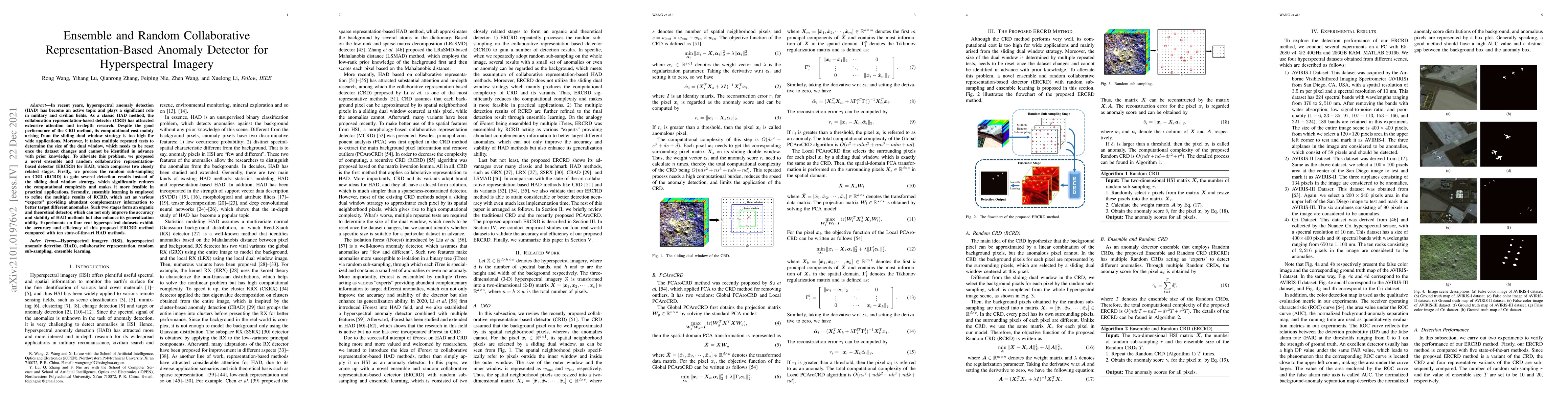A new anomaly detection method for hyperspectral imagery is proposed, combining random sub-sampling and ensemble learning to reduce computational complexity and improve accuracy.