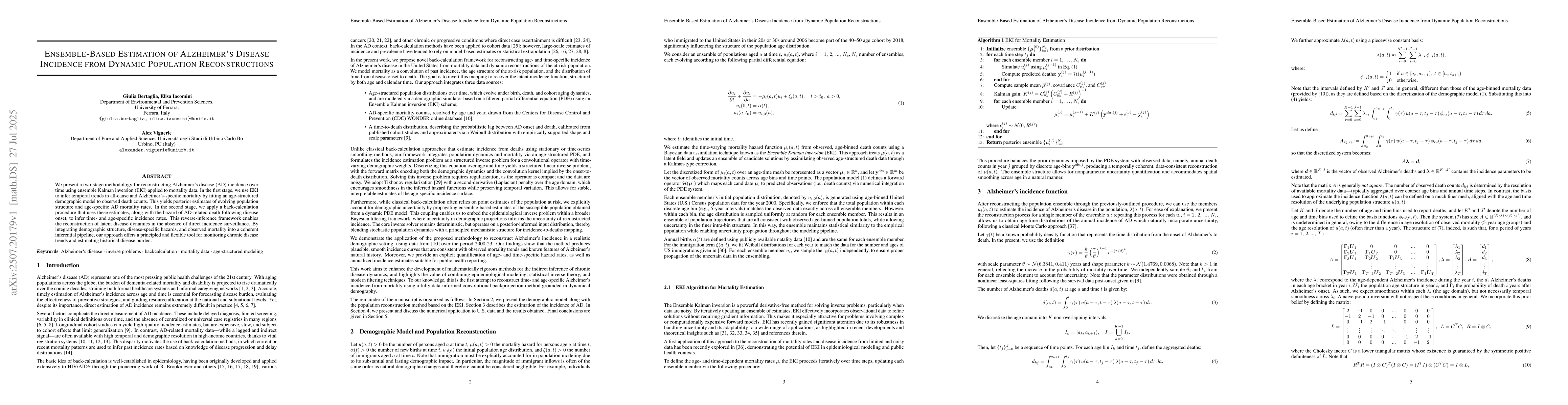 We present a two-stage methodology for reconstructing Alzheimer's disease (AD) incidence over time using ensemble Kalman inversion (EKI) applied to mortality data. In the first stage, we use EKI to infer temporal trends in all-cause and Alzheimer's-specific mortality by fitting an age-structured demographic model to observed death counts. This yields posterior estimates of evolving population structure and age-specific AD mortality rates. In the second stage, we apply a back-calculation procedure that uses these estimates, along with the hazard of AD-related death following disease onset, to infer time- and age-specific incidence rates. This reverse-inference framework enables the reconstruction of latent disease dynamics in the absence of direct incidence surveillance. By integrating demographic structure, disease-specific hazards, and observed mortality into a coherent inferential pipeline, our approach offers a principled and flexible tool for monitoring chronic disease trends and estimating historical disease burden.