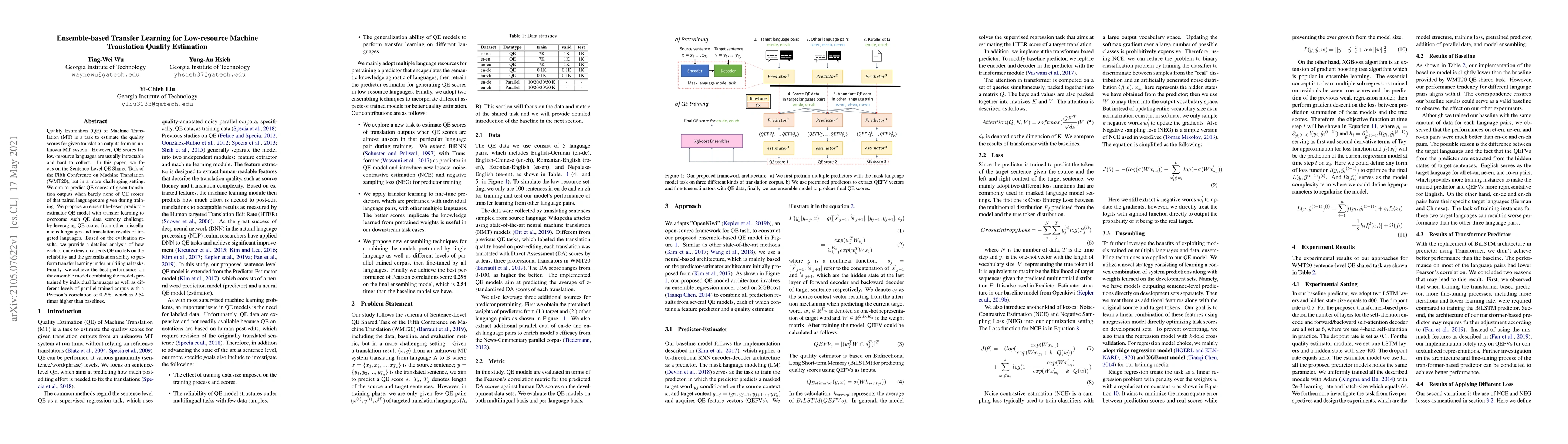 This paper presents an ensemble-based transfer learning model for estimating the quality of machine translations for low-resource languages, where direct quality scores are scarce. The proposed model achieves significantly better performance than baselines by leveraging quality scores from other languages and pretrained multilingual models.