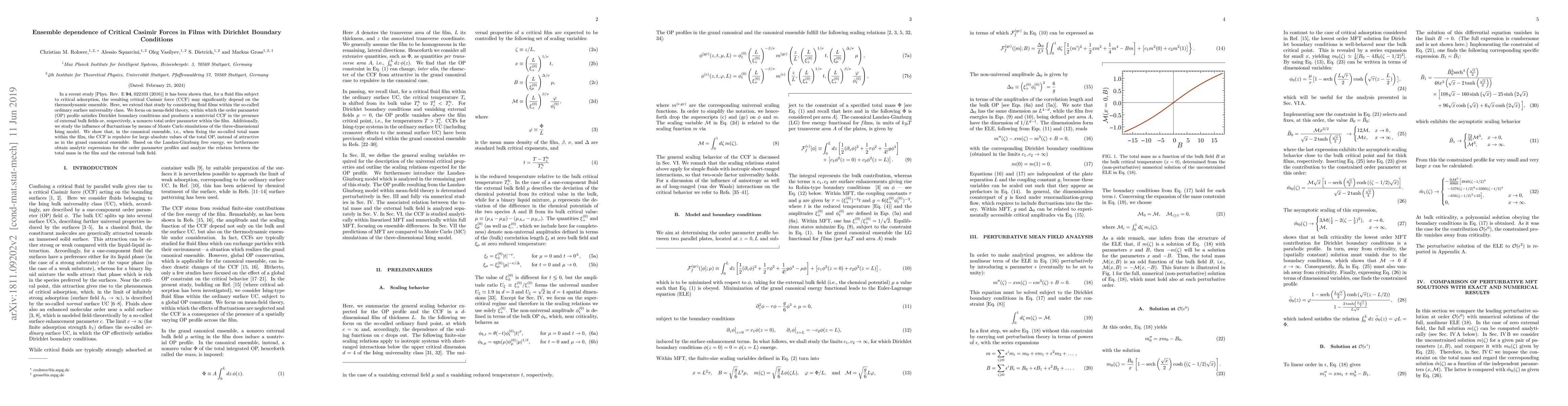 This paper investigates the ensemble dependence of critical Casimir forces in fluid films under Dirichlet boundary conditions, showing that the force is repulsive in the canonical ensemble and attractive in the grand canonical ensemble. Analytical results are corroborated by Monte Carlo simulations of the Ising model.