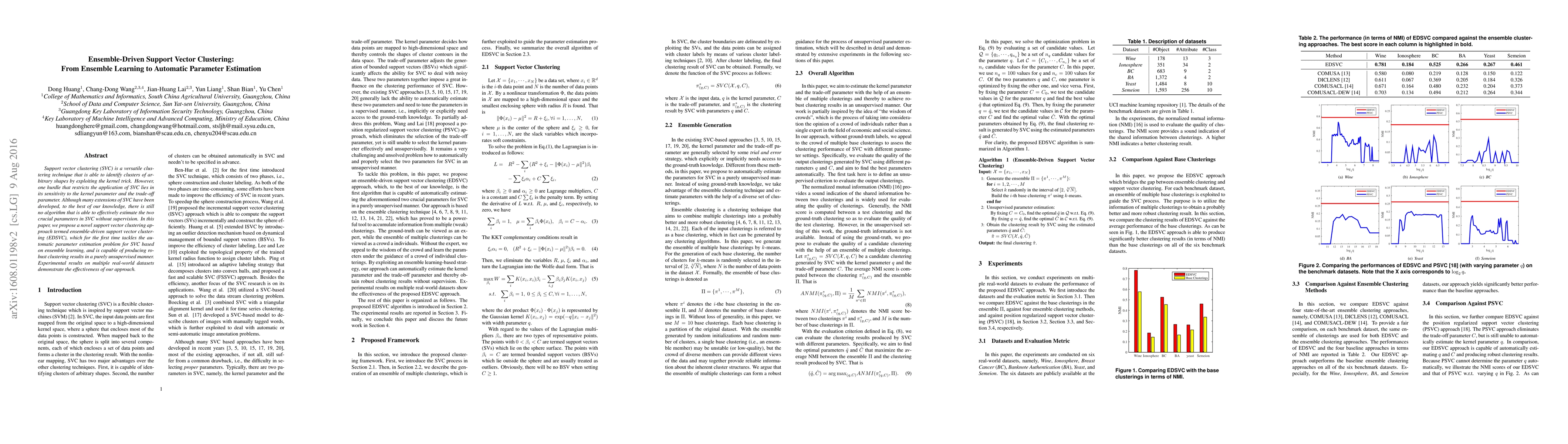 A new clustering technique called Ensemble-Driven Support Vector Clustering (EDSVC) is proposed to automatically estimate crucial parameters in Support Vector Clustering without supervision, producing robust results on real-world datasets.