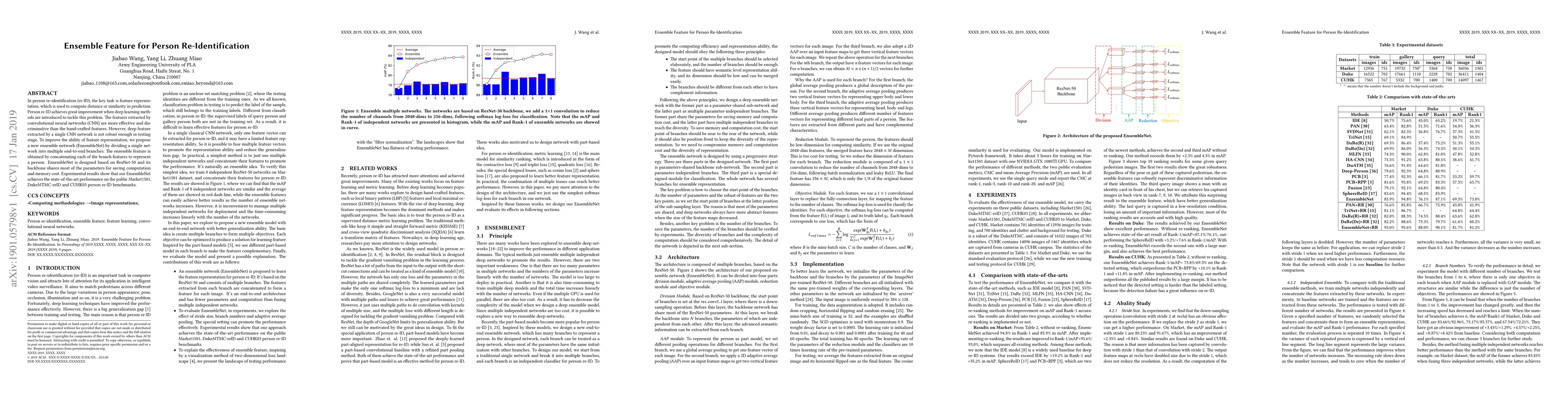 This paper proposes EnsembleNet, an ensemble feature representation method for person re-identification, which divides a single CNN network into multiple branches to extract more robust features. Experimental results demonstrate that EnsembleNet achieves state-of-the-art performance on several re-ID benchmarks.