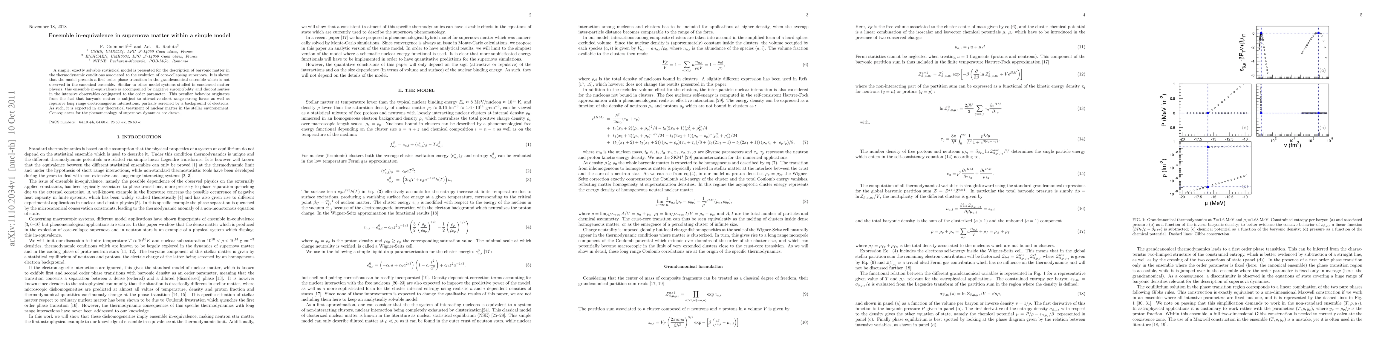 A simple model of supernova matter shows a first-order phase transition in the grandcanonical ensemble but not in the canonical ensemble, with implications for understanding stellar dynamics.