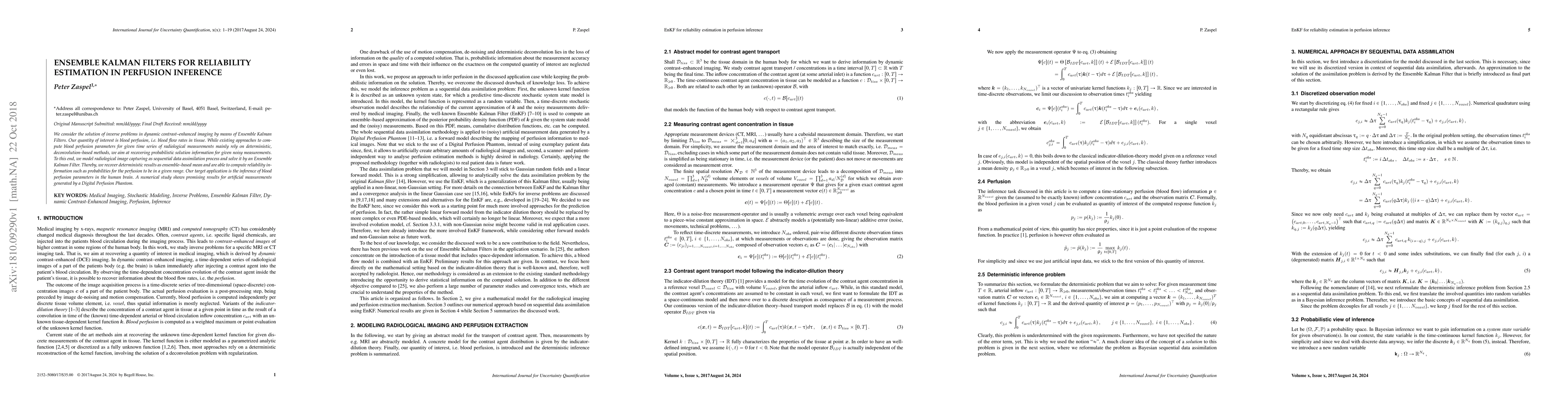 This paper proposes using Ensemble Kalman Filters to solve inverse problems in dynamic contrast-enhanced imaging for estimating blood perfusion rates in tissue. Unlike deterministic methods, it provides probabilistic reliability information for perfusion inference, demonstrating promising results in a numerical study with artificial data.