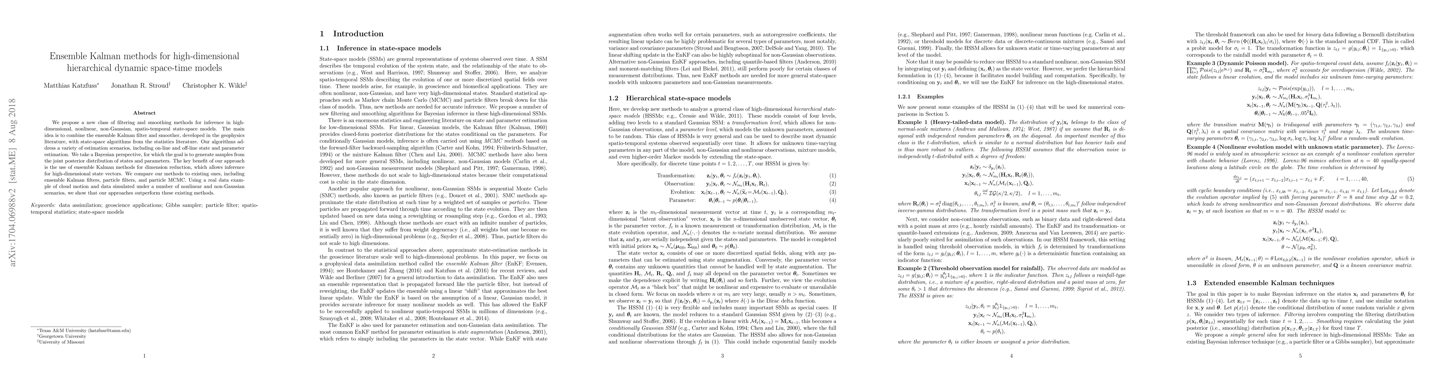 This paper introduces ensemble Kalman methods for high-dimensional, nonlinear, spatio-temporal state-space models, combining ensemble Kalman filters and smoothers with state-space algorithms. The proposed approach effectively reduces dimensionality, enabling better inference and outperforming existing methods like particle filters and MCMC in various estimation scenarios.