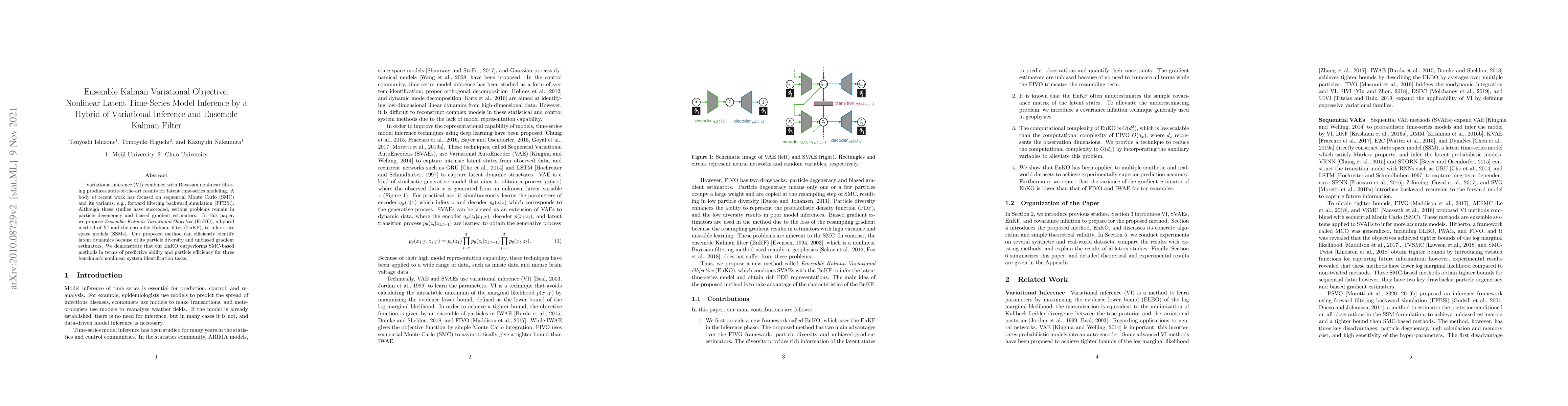 This paper proposes Ensemble Kalman Variational Objective (EnKO), a hybrid method combining variational inference and the ensemble Kalman filter to efficiently infer state space models. EnKO addresses particle degeneracy and gradient bias issues in sequential Monte Carlo methods, demonstrating superior predictive ability and efficiency in benchmark nonlinear system identification tasks.