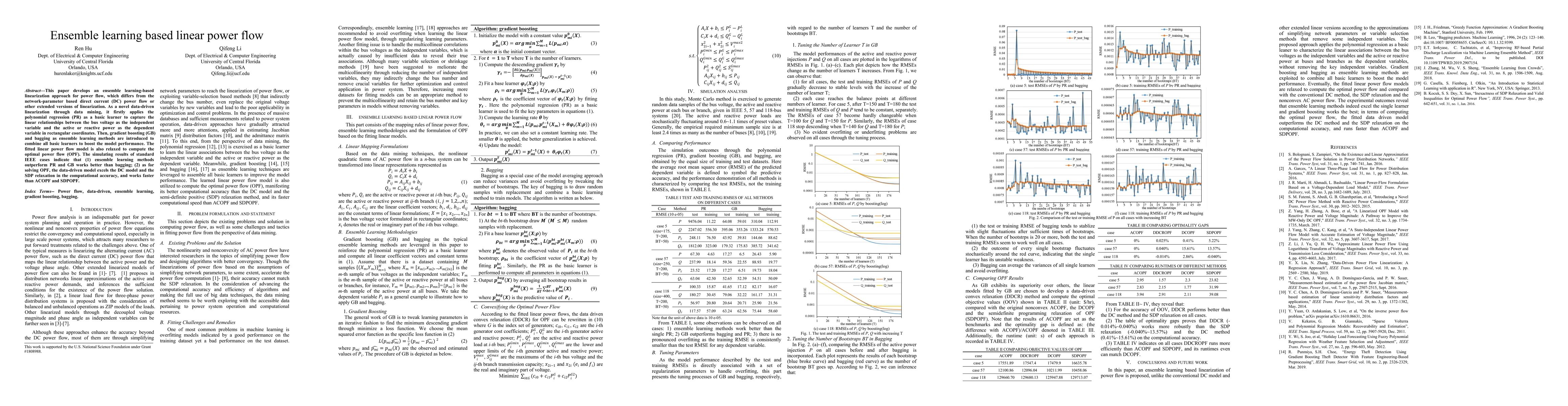 This paper proposes an ensemble learning-based approach for linear power flow, utilizing polynomial regression, gradient boosting, and bagging to enhance model performance. The method outperforms traditional DC power flow and is more efficient for solving optimal power flow problems.