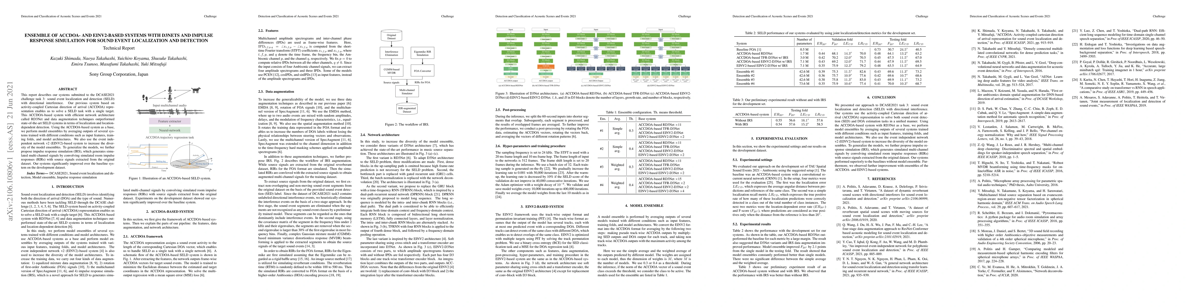 This paper presents ensemble systems combining ACCDOA-based and EINV2-based models with D3Nets and impulse response simulation for sound event localization and detection, achieving superior performance in the DCASE2021 challenge by leveraging model diversity and data augmentation techniques.